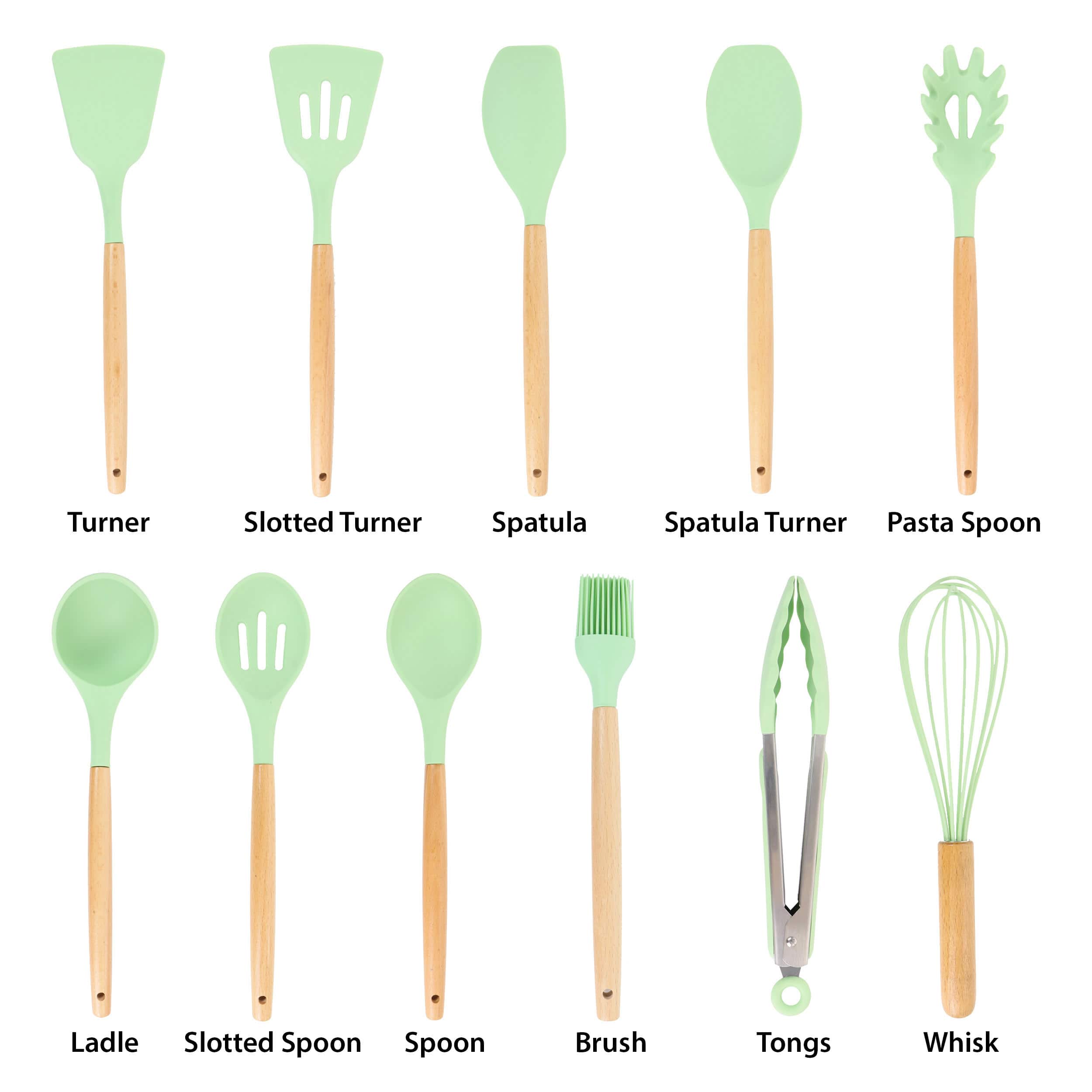 MegaChef Mint Green Silicone & Wood Cooking Utensils Set, 12ct.