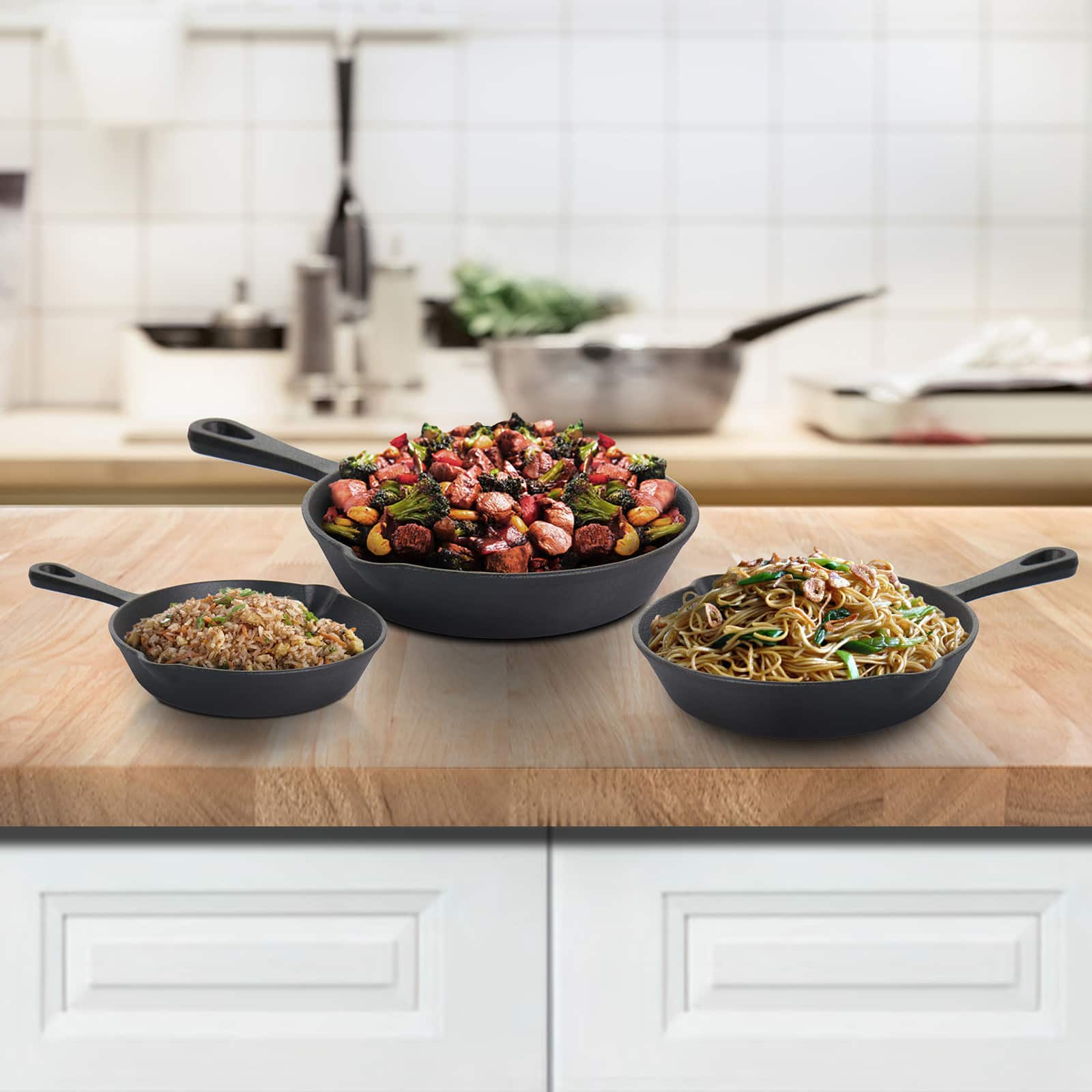MegaChef Pre-Seasoned 3 Piece Cast Iron Skillet Set