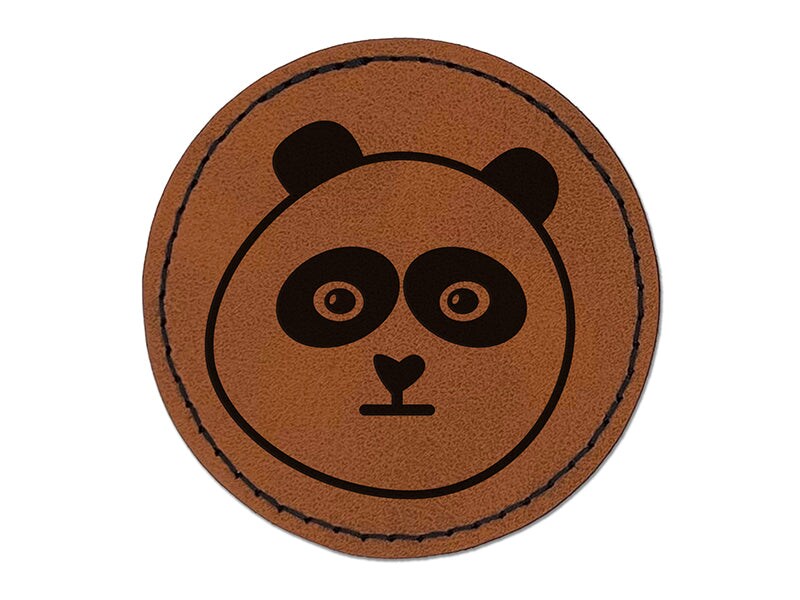 Meh Panda Face Unamused Round Iron-On Engraved Faux Leather Patch Applique - 2.5"