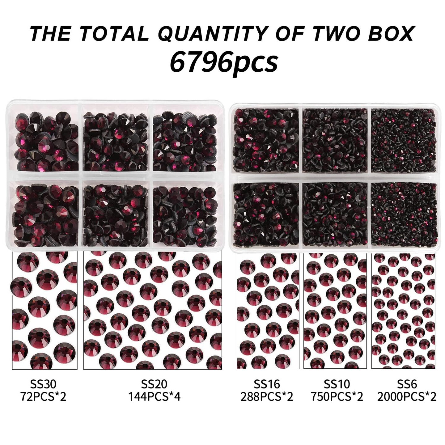 MEIBITE 6796PCS Purple Hotfix Rhinestones Crystal Stones Glass for Fabric Clothes Shirts Sparkly Flat Back Round with Tweezers and Picking Pen (SS6~SS30 Set)