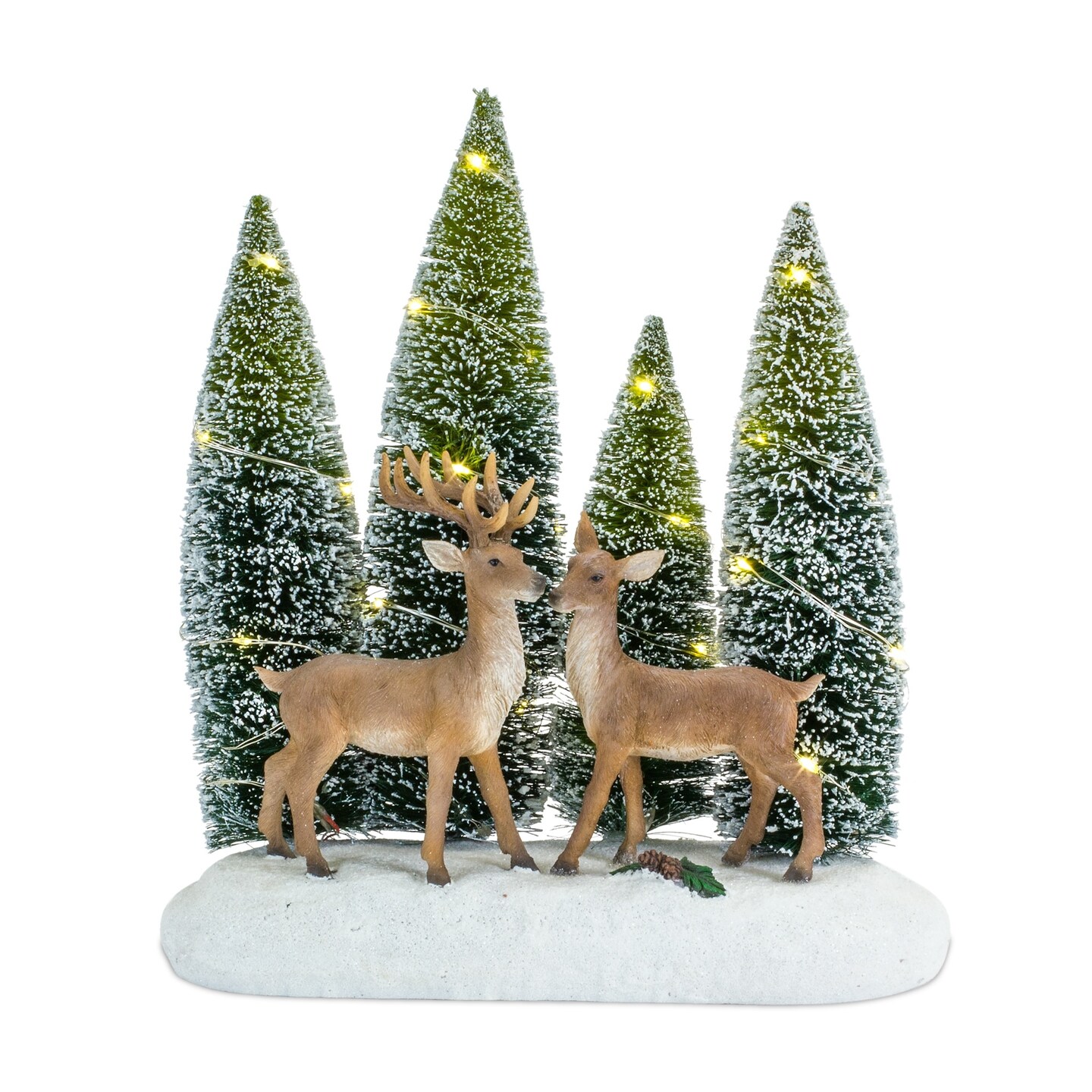 Melrose 11.25" LED Lighted Deer and Trees Christmas Tabletop Decoration