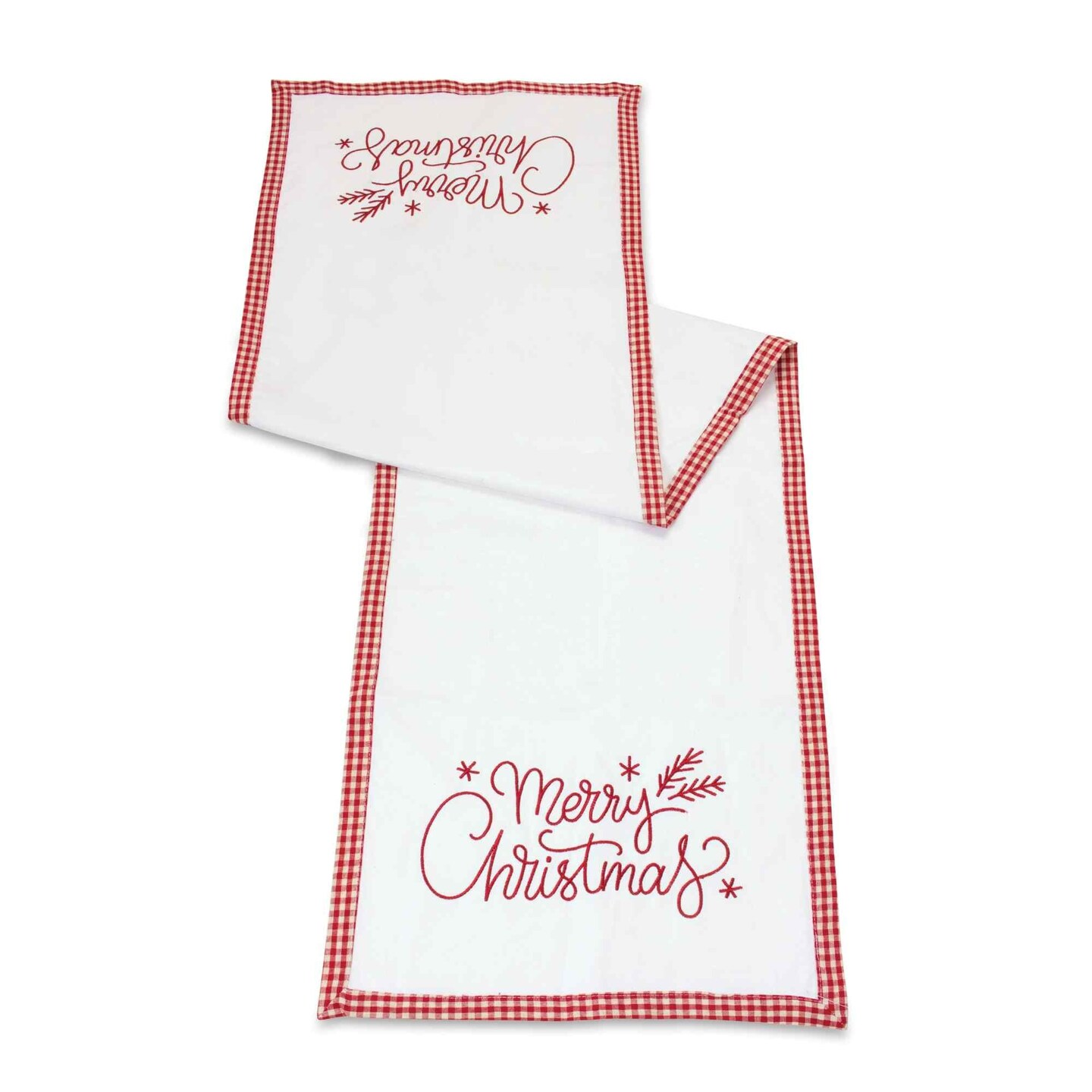 Melrose 59" Red and White Checkered "Merry Christmas" Embroidered Cotton Table Runner