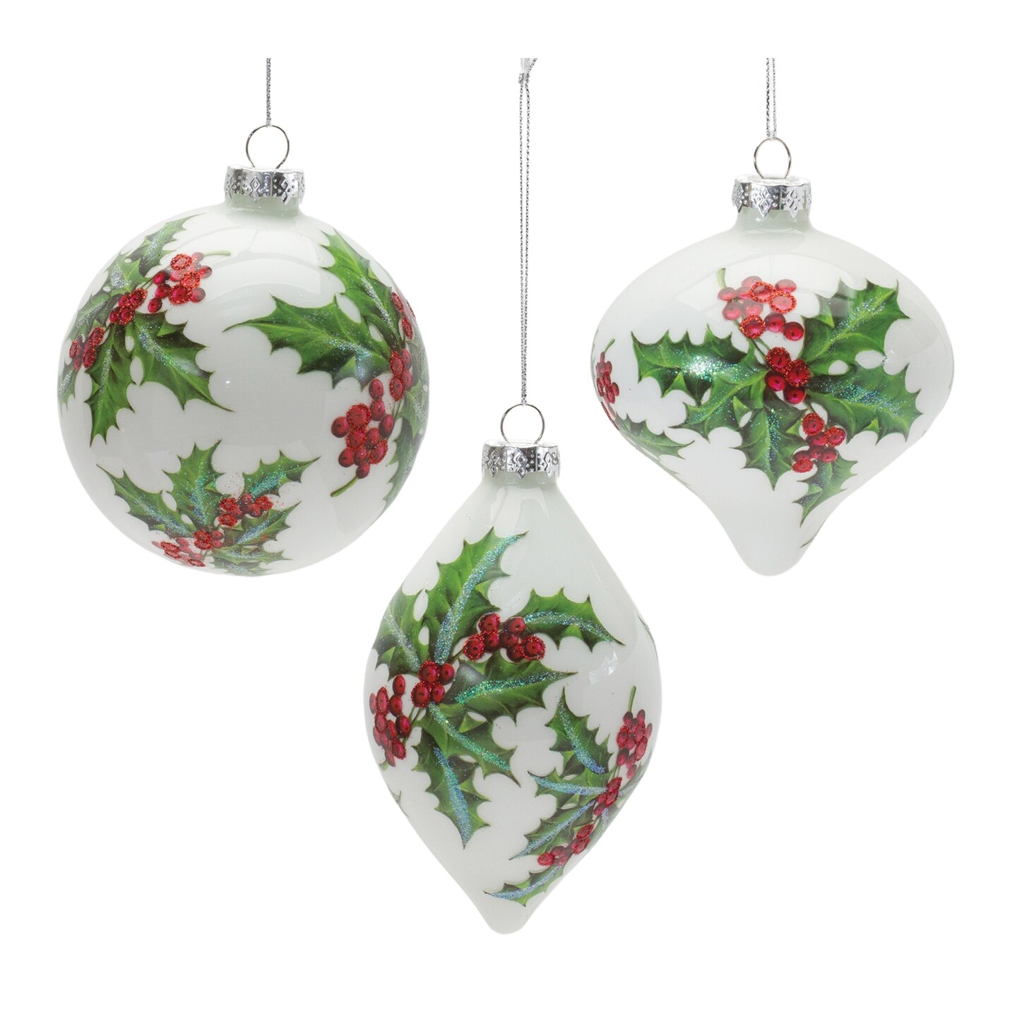 Melrose Holly Berry Ball Onion Drop Glass Christmas Ornaments - 6" - 6ct
