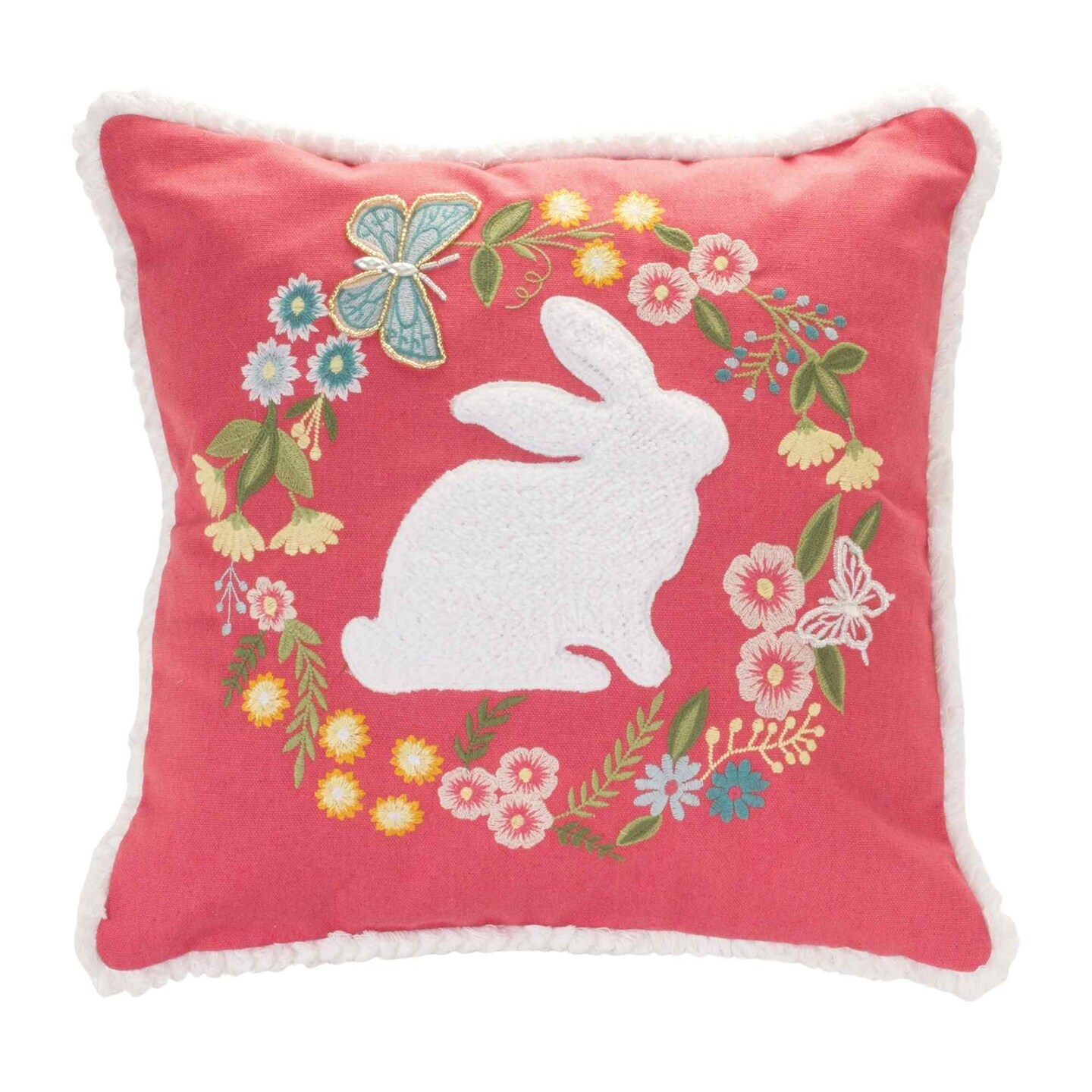 Melrose Rabbit Floral Embroidered Throw Pillow - 16" - Multi-Color