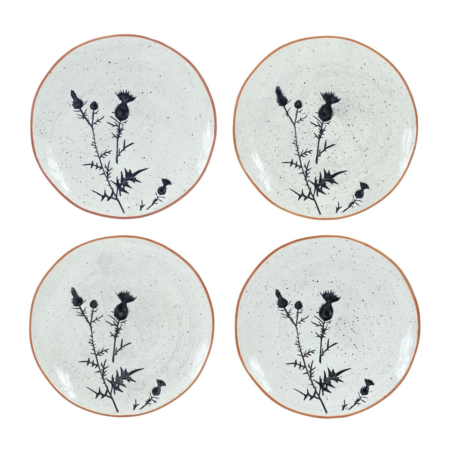Melrose Rustic Thistle Etched Serving Plate - 8" - White and Black - Set of 4