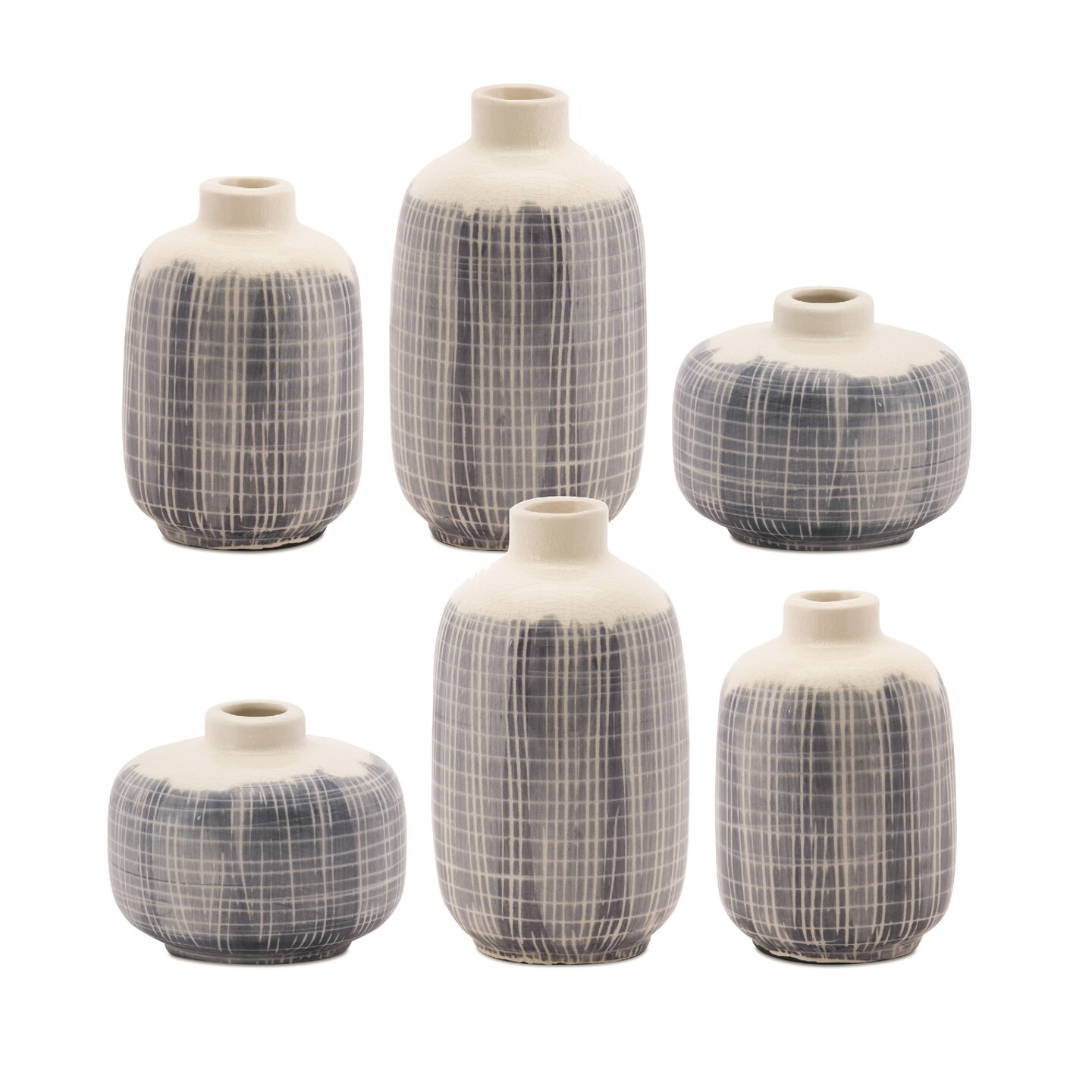 Melrose Set of 6 Blue Terra Cotta Mini Vases 6.25"