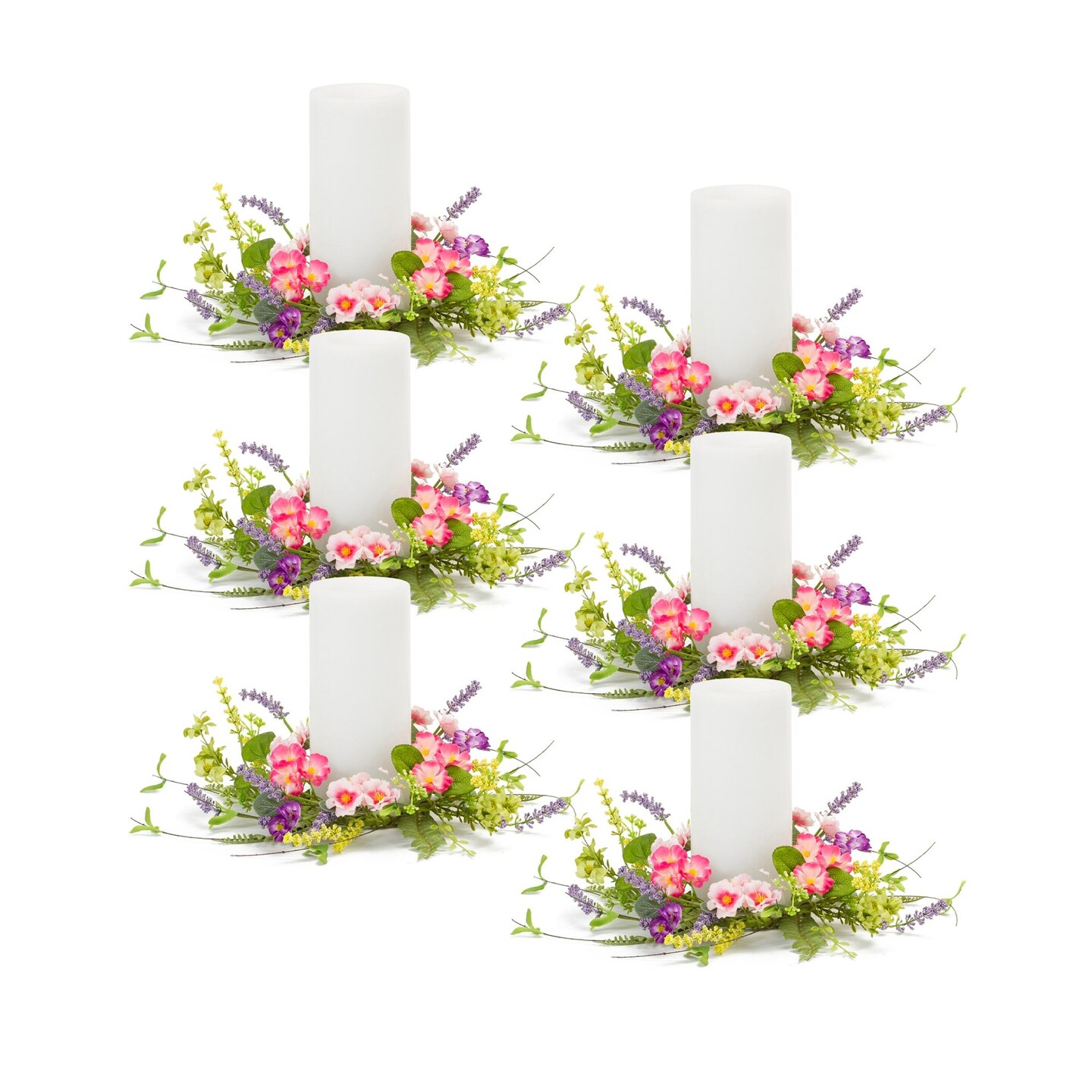 Melrose Set of 6 Green and Pink Mixed Floral Candle Rings 12.5"