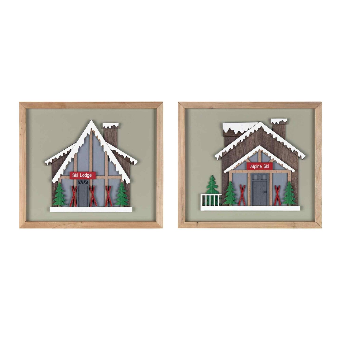 Melrose Ski Lodge Framed Christmas Wall Art - 12" x 10.75" - Set of 4
