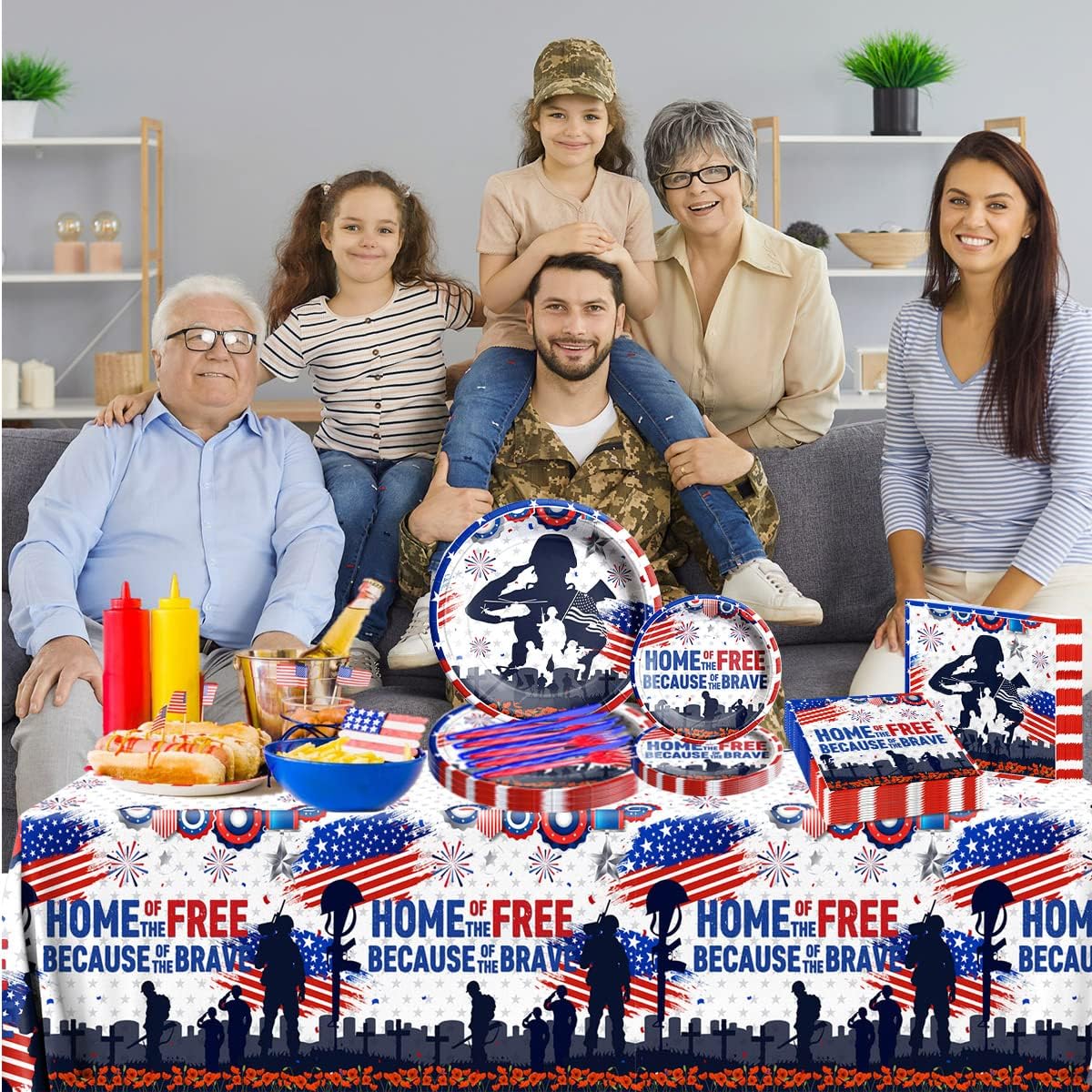 Memorial Day Decorations Tableware 121Pcs,Patriotic Soldier 4th of July Tableware set