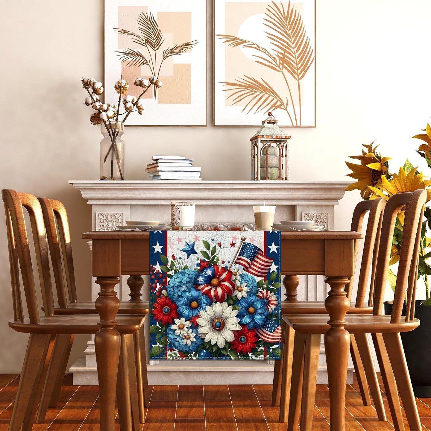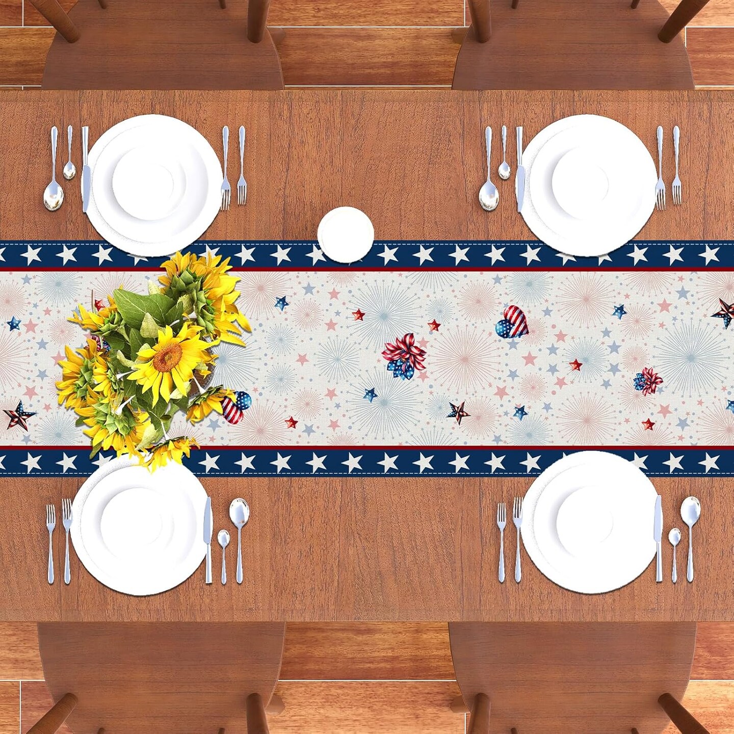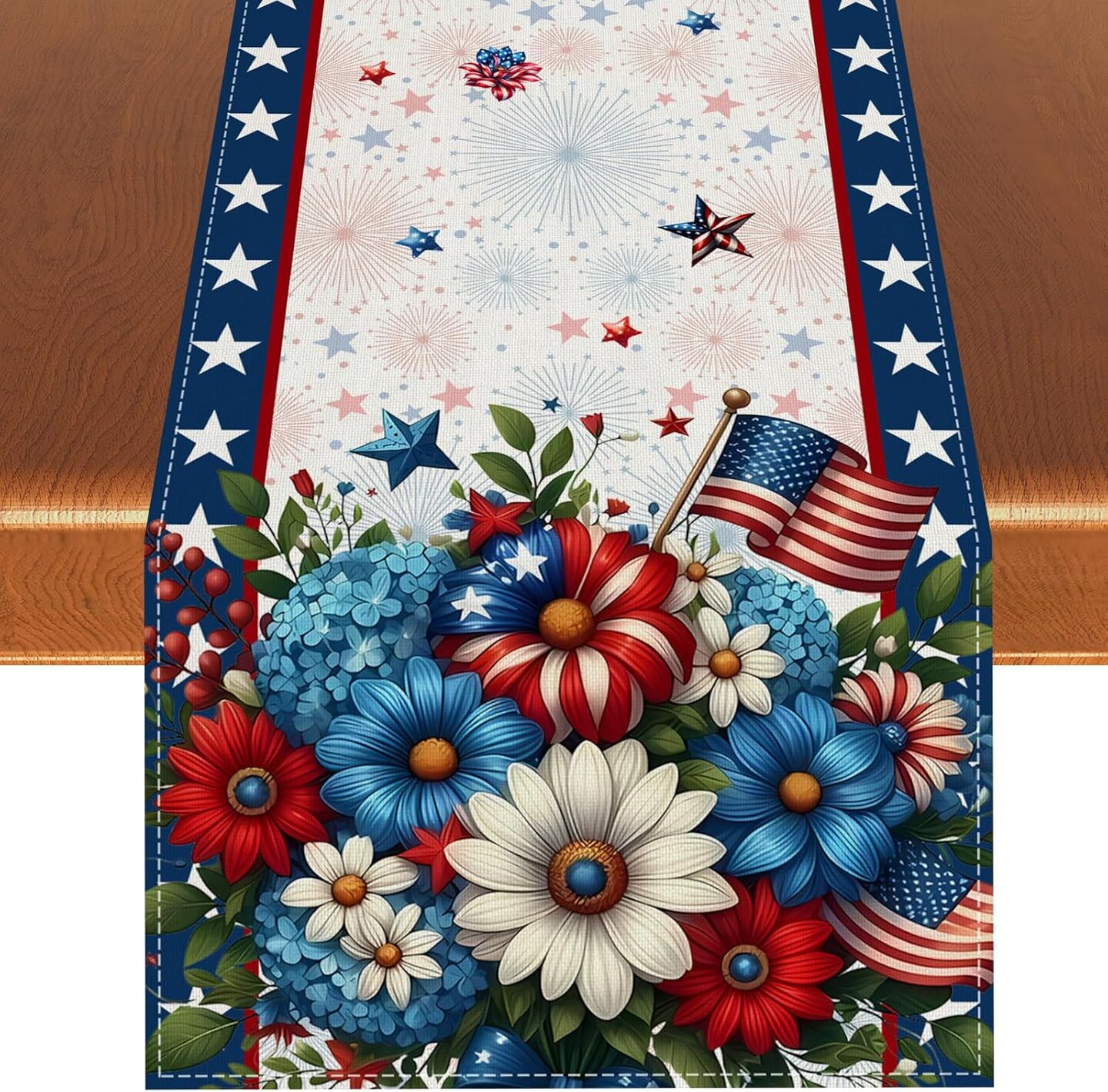 Memorial Day Patriotic 4th of July Table Runner – Red White and Blue Flowers Table Decor, Veterans Day & Independence Day Decorations for Home Kitchen Table, 13×72” – Perfect 4th of July TableTop Decor
