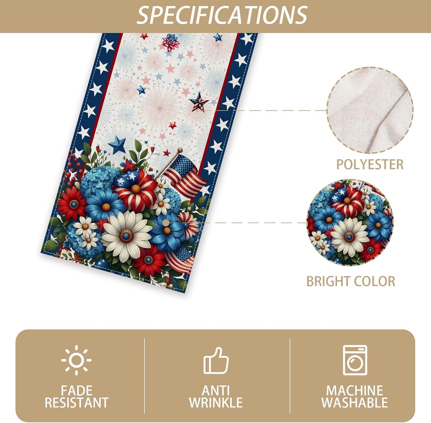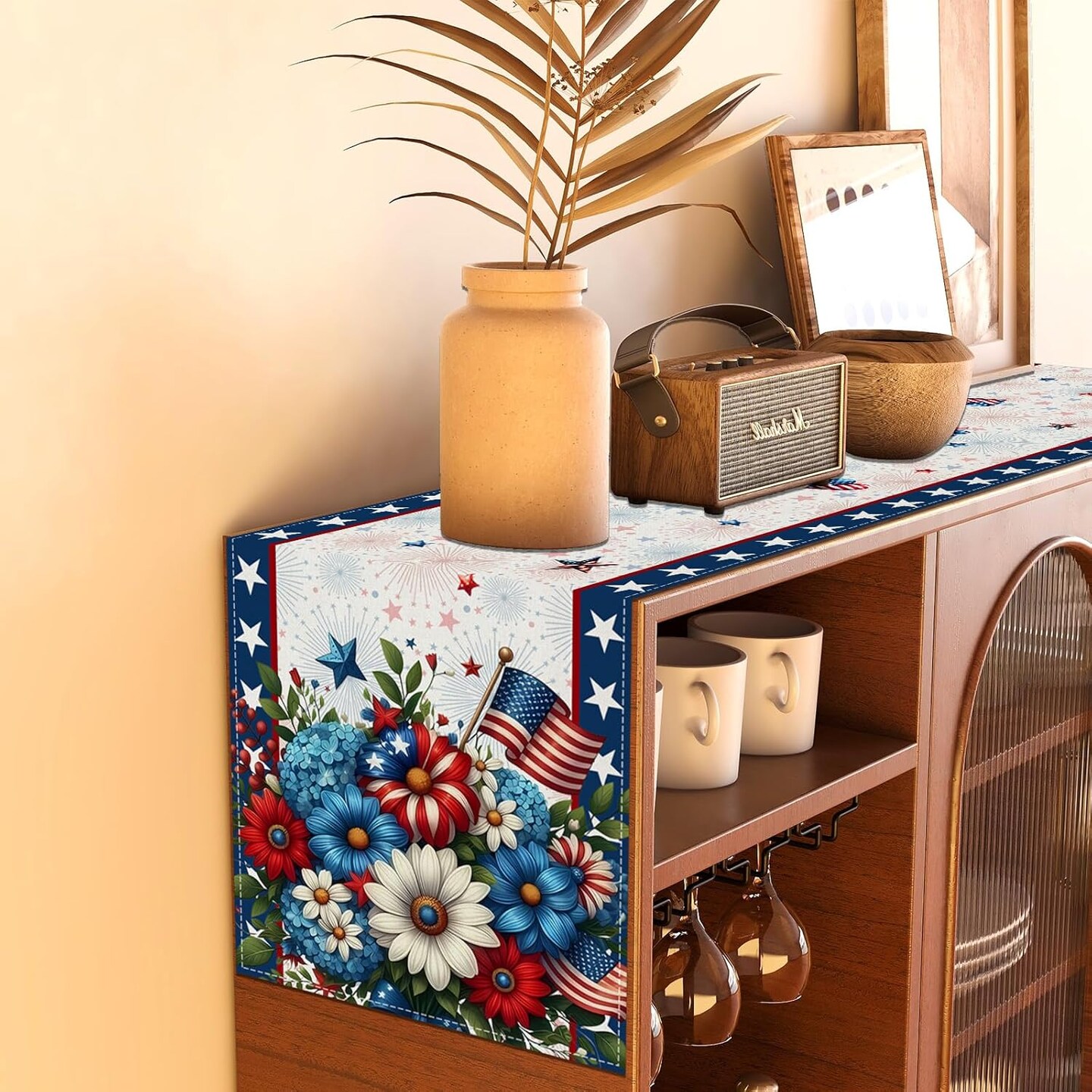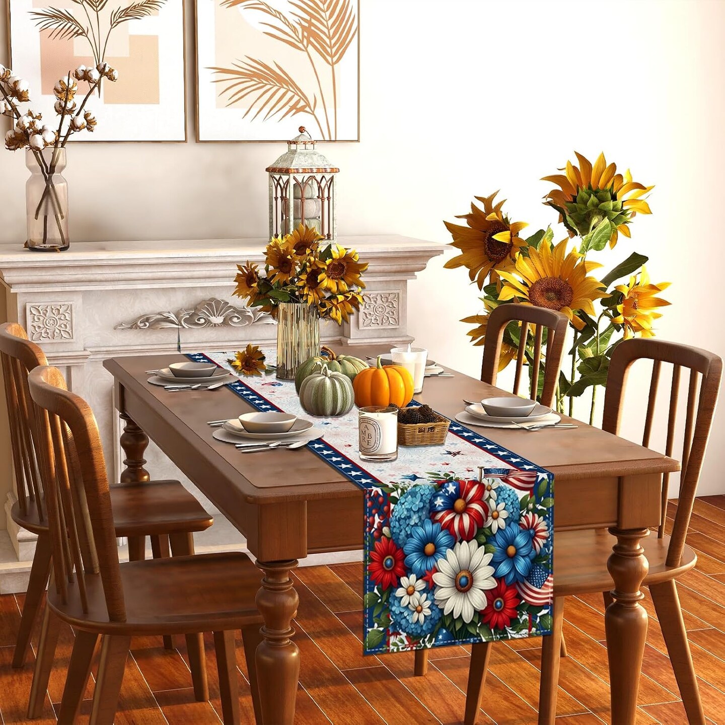 Memorial Day Patriotic 4th of July Table Runner – Red White and Blue Flowers Table Decor, Veterans Day & Independence Day Decorations for Home Kitchen Table, 13×72” – Perfect 4th of July TableTop Decor