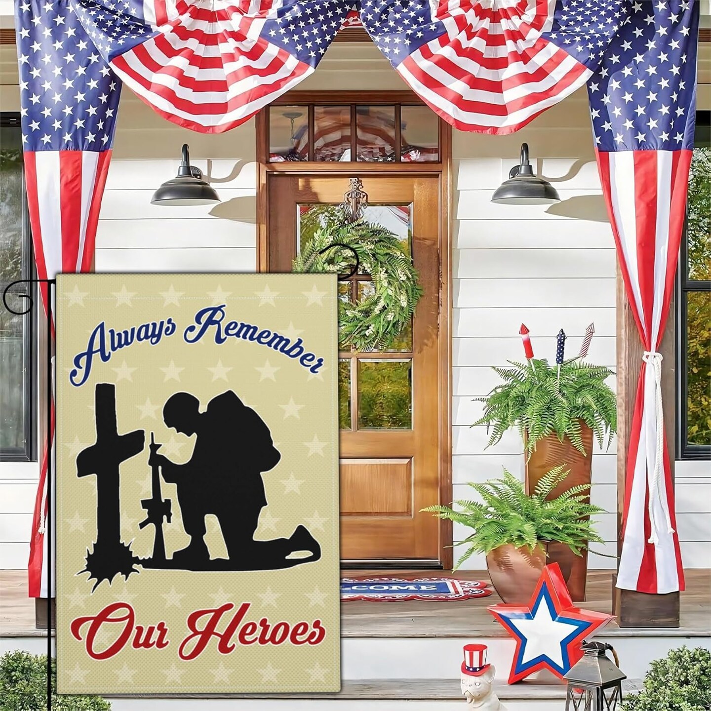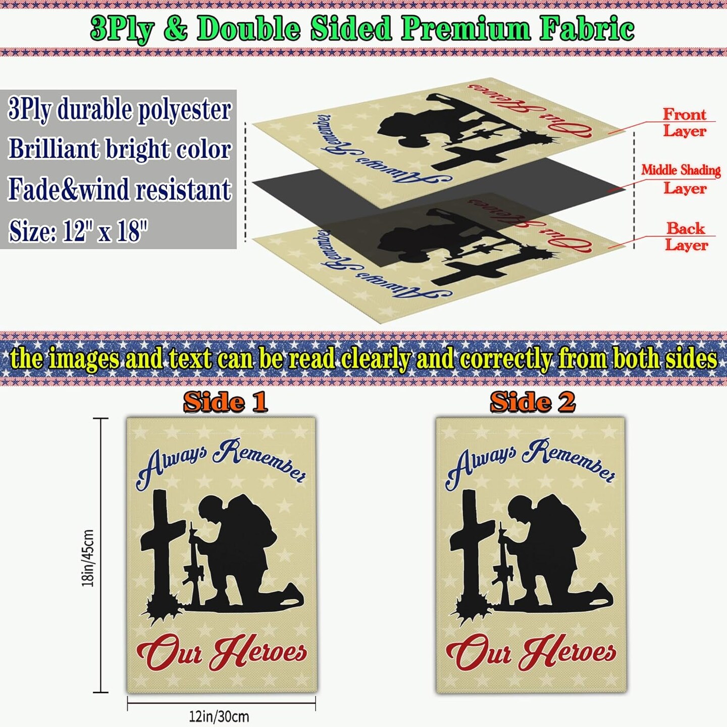 Memorial Day Patriotic Garden Flags for Outside 12x18 Inch 3Ply Double Sided 4th of July Independence Veterans Day Flag Outdoor House Yard Holiday Decorations Sign Flag