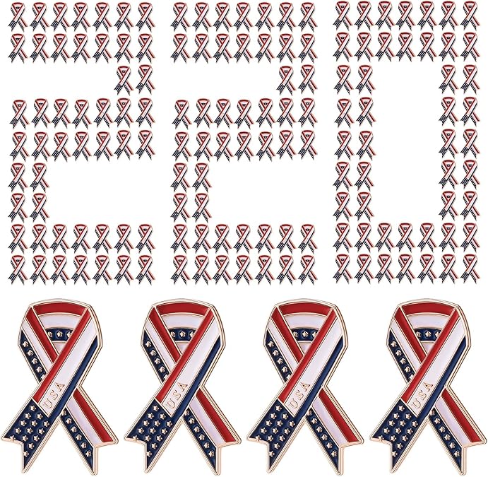Memorial Day Veteran Gifts USA American Flag Lapel Pins 4th of July Metal Patriotic Ribbon Pins Bulk for Men Women