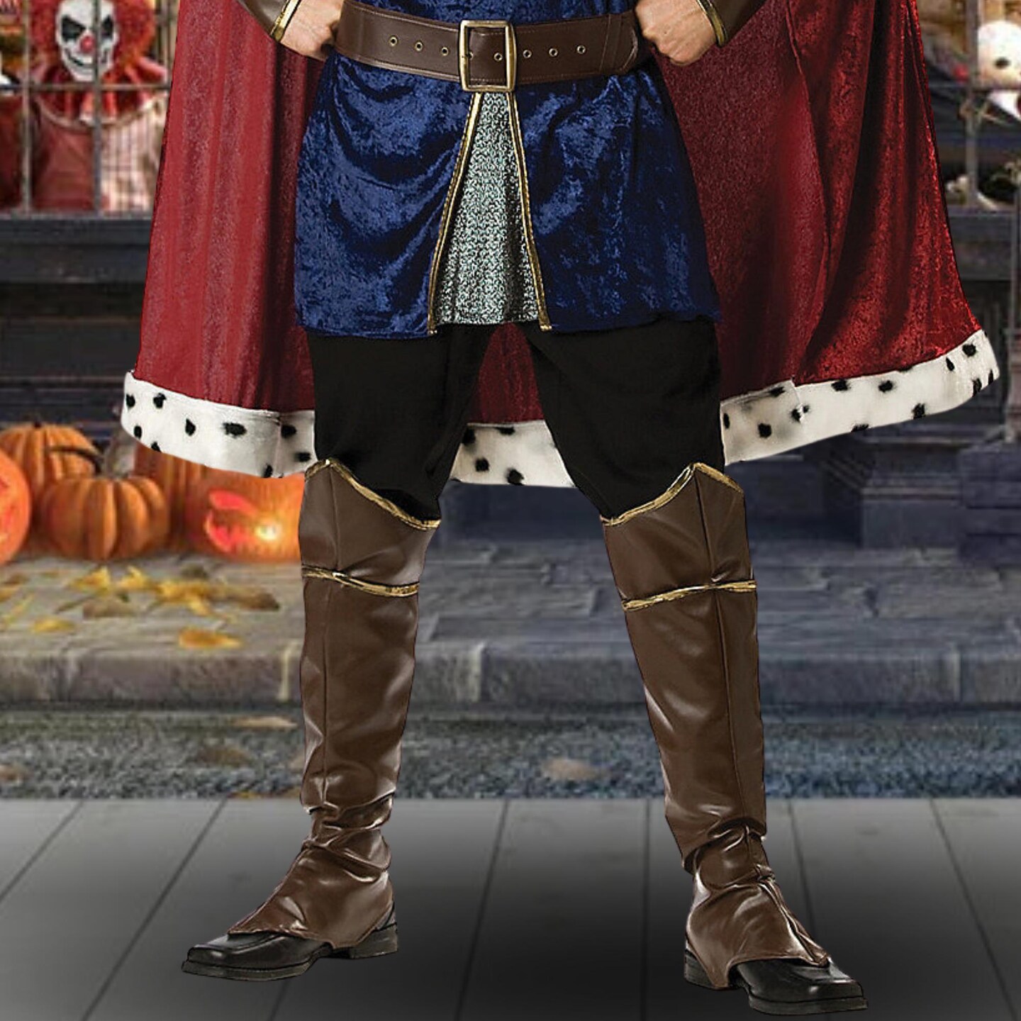 Men's Noble King Costume Blue Tunic Red Cape Vinyl Crown Halloween Outfit