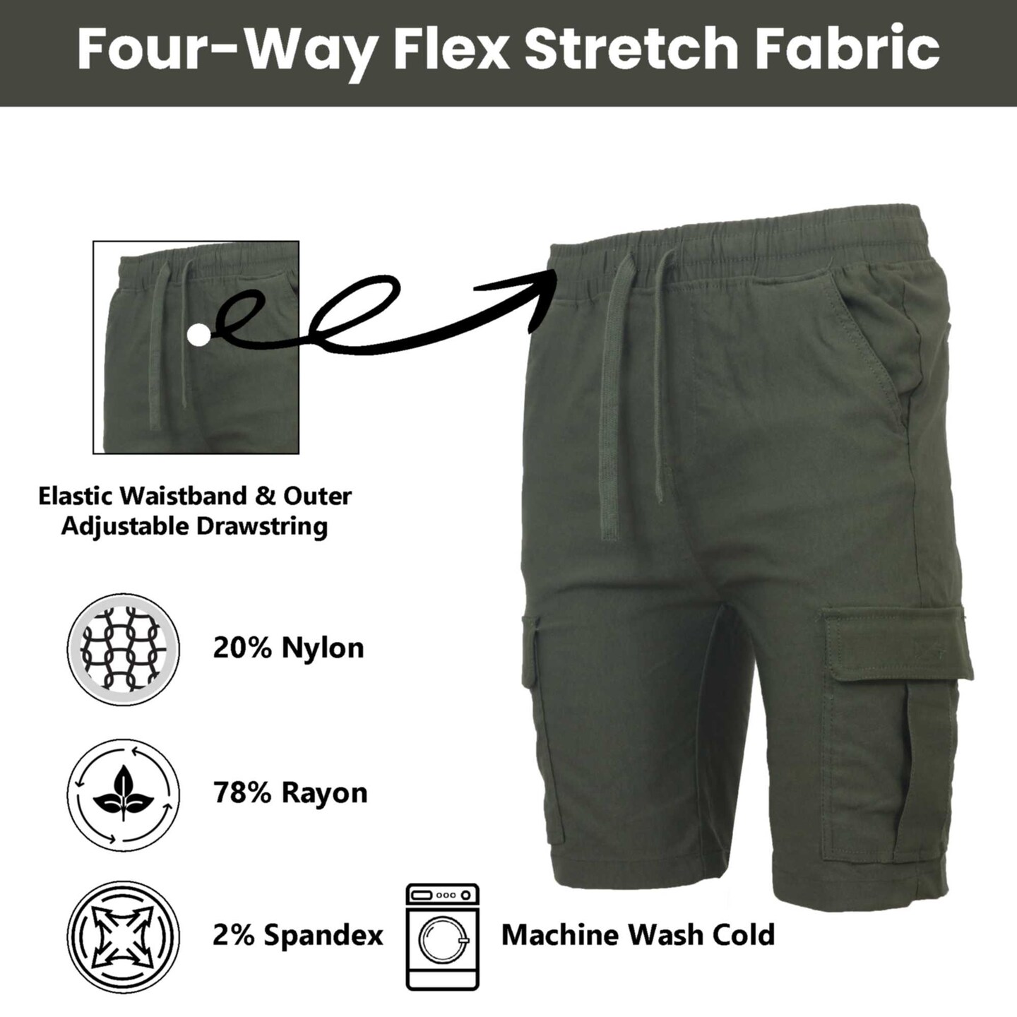 Men’s Flex Cargo Shorts with Elastic Waistband and Drawstring – Comfortable Fit with 6 Pockets and Stretch Fabric (S-2XL)