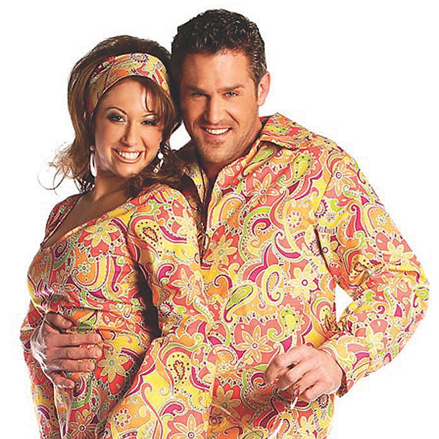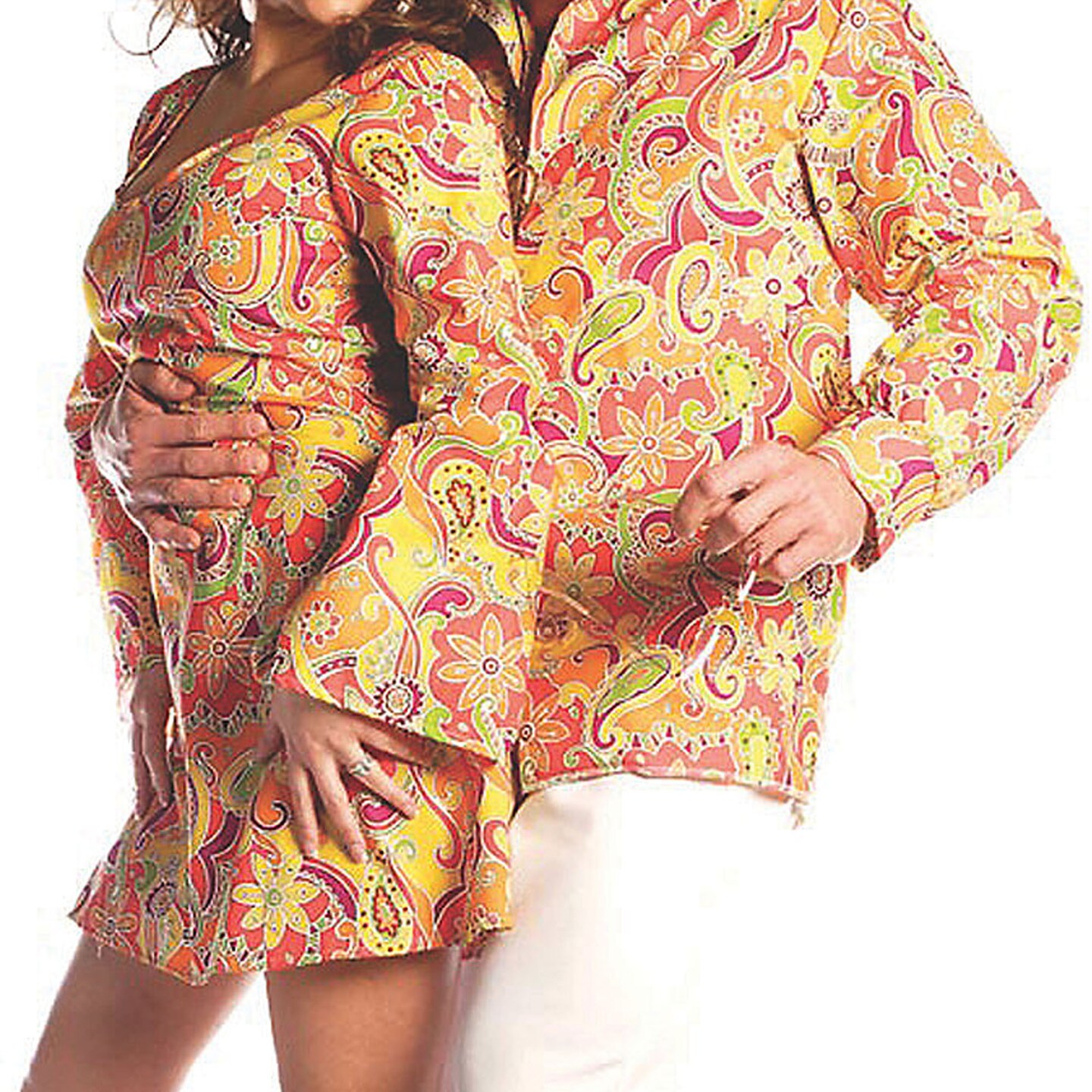 Mens Groovy Costume Orange Button Front Shirt Retro Disco Outfit Halloween Party
