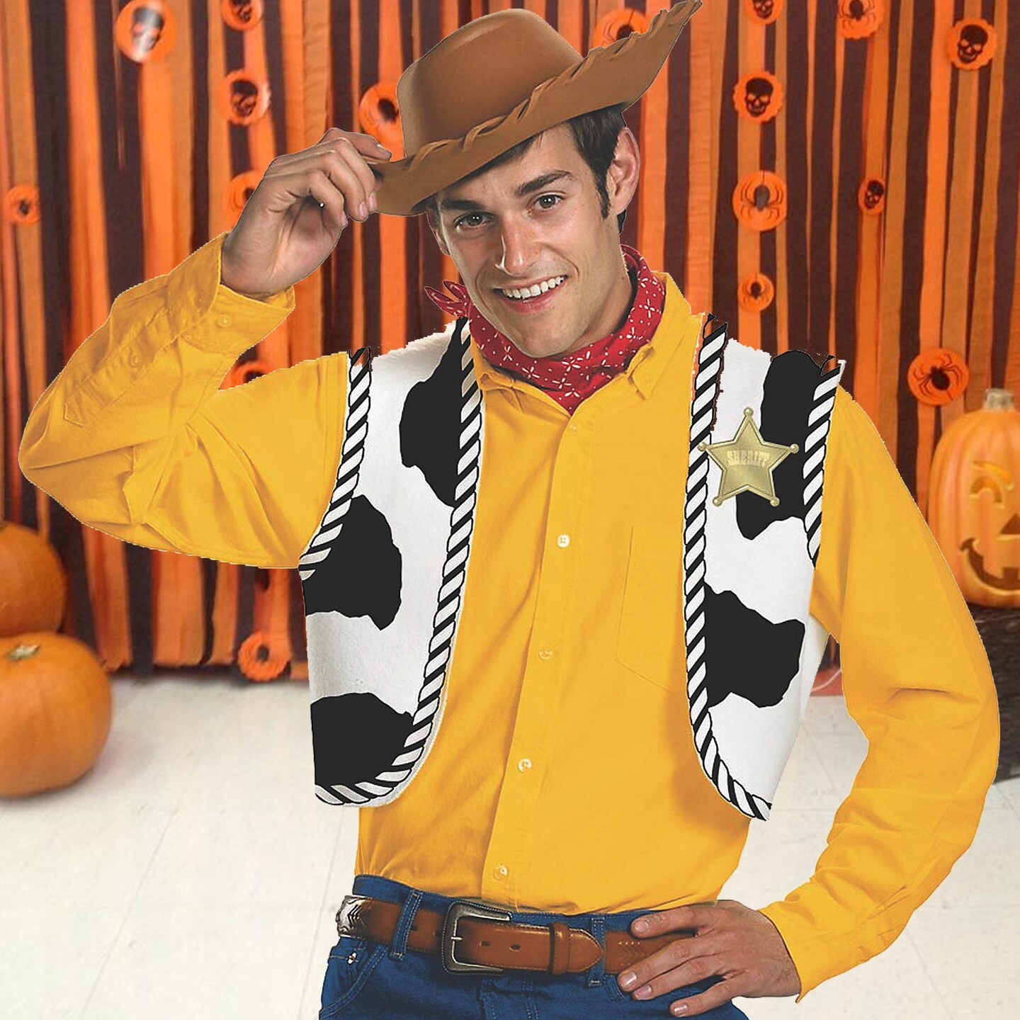 Mens Woody Costume Kit Hat Vest Bandana Toy Story Outfit Accessories