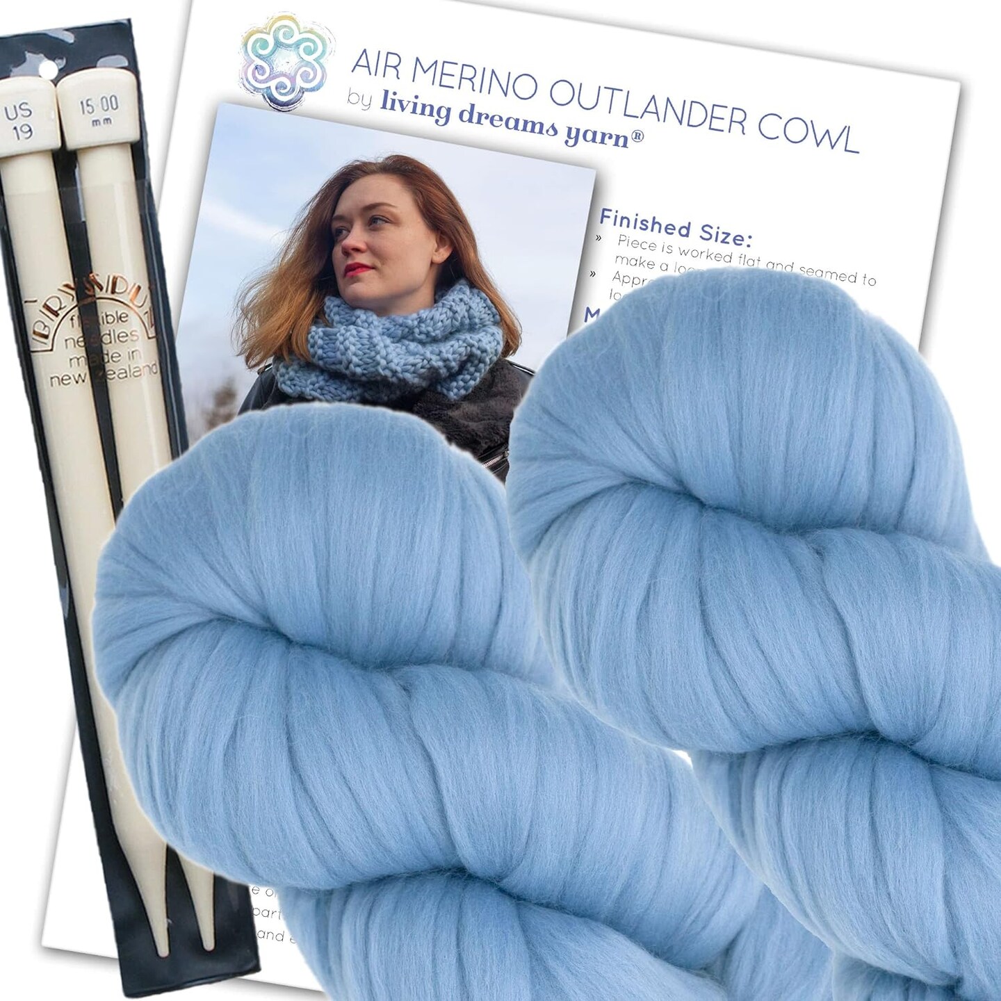 Merino Cowl Knitting Kit: Soft and Thick #7 Weight Jumbo Yarn, Knitting Needles and Pattern. Beginner. Everything Included, Great for Gifts