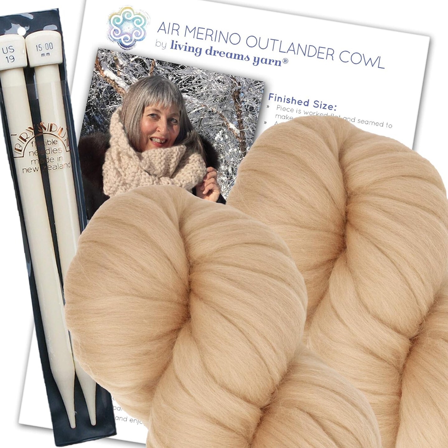 Merino Cowl Knitting Kit: Soft and Thick #7 Weight Jumbo Yarn, Knitting Needles and Pattern. Beginner. Everything Included, Great for Gifts