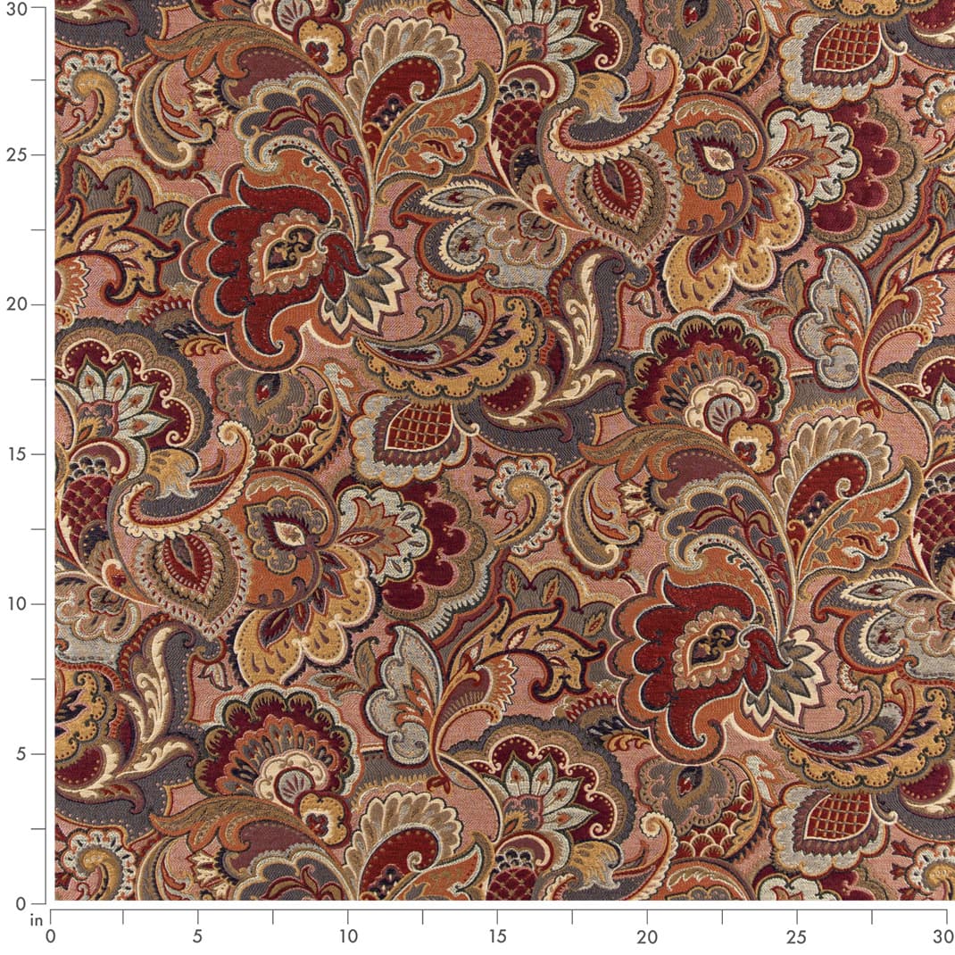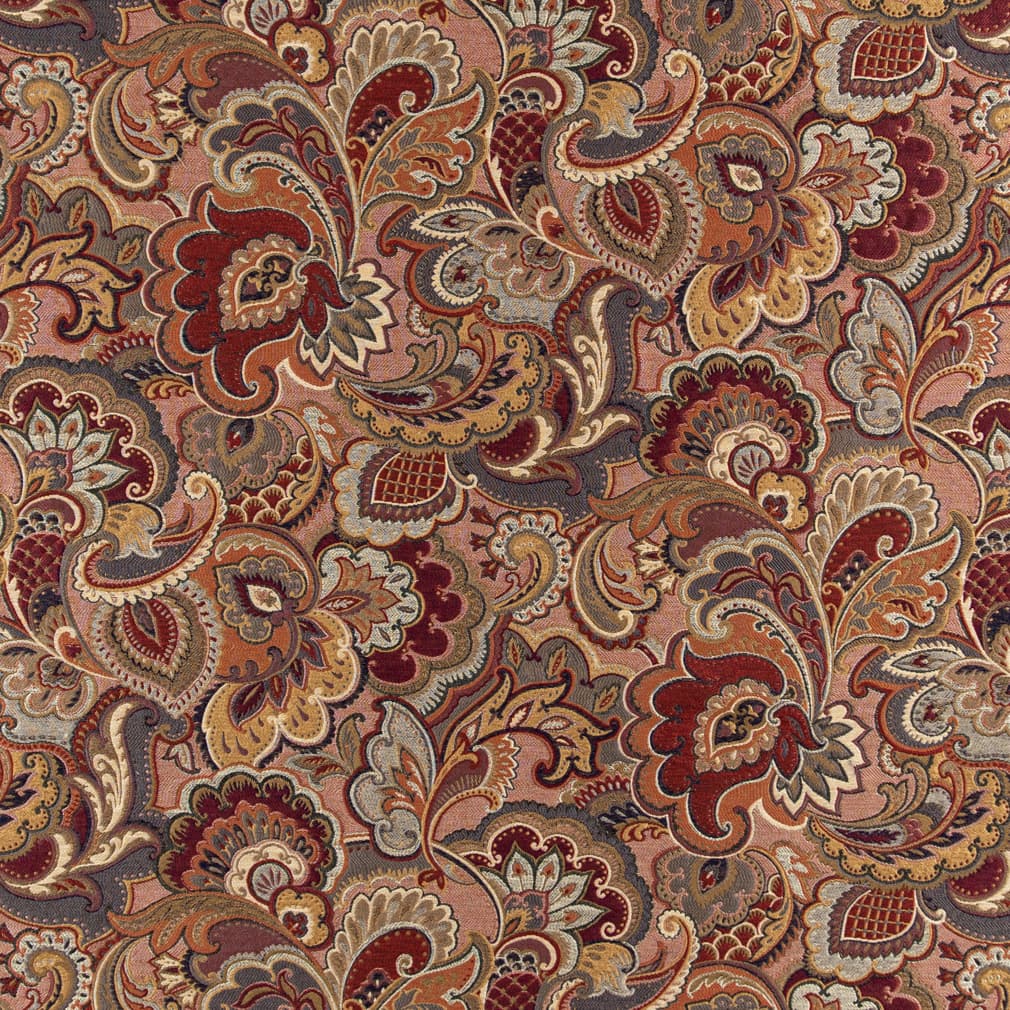 Merlot - Orange & Rust,Red & Burgundy Paisley Upholstery Fabric 54 Inches"