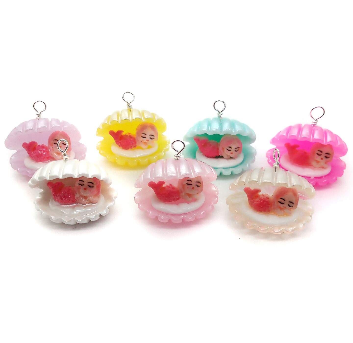 Mermaids in Shells Pendants, 5 pieces, Cute Seashell Charms, Adorabilities