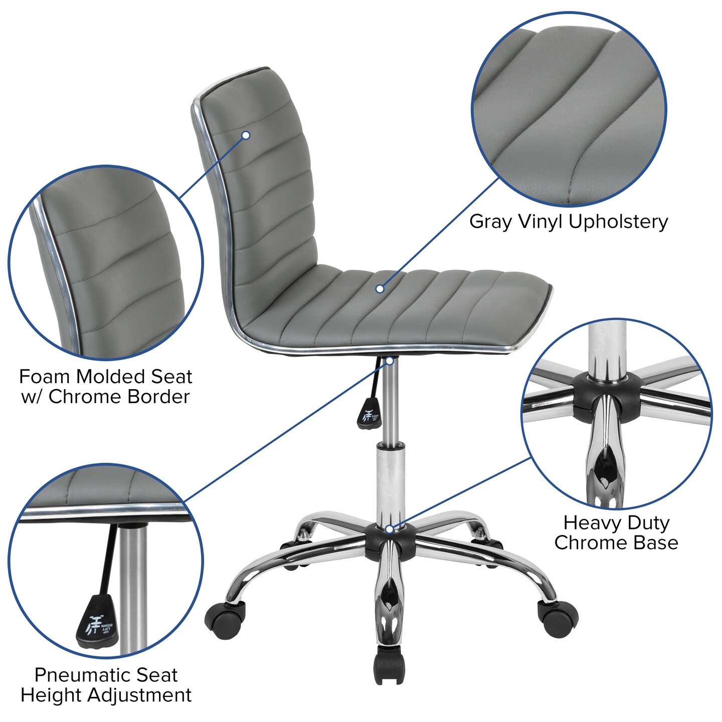 Merrick Lane Amelie Home Office Chair Ergonomic Executive Ribbed Low Back Armless Computer Desk Chair - Base, Frame & Border