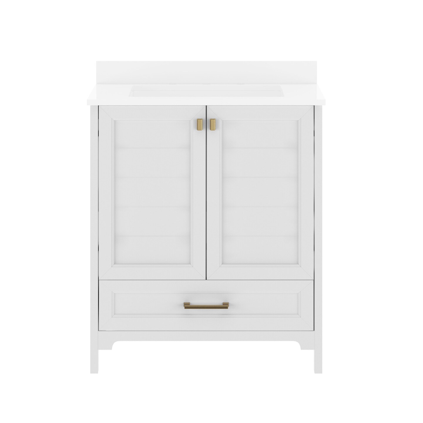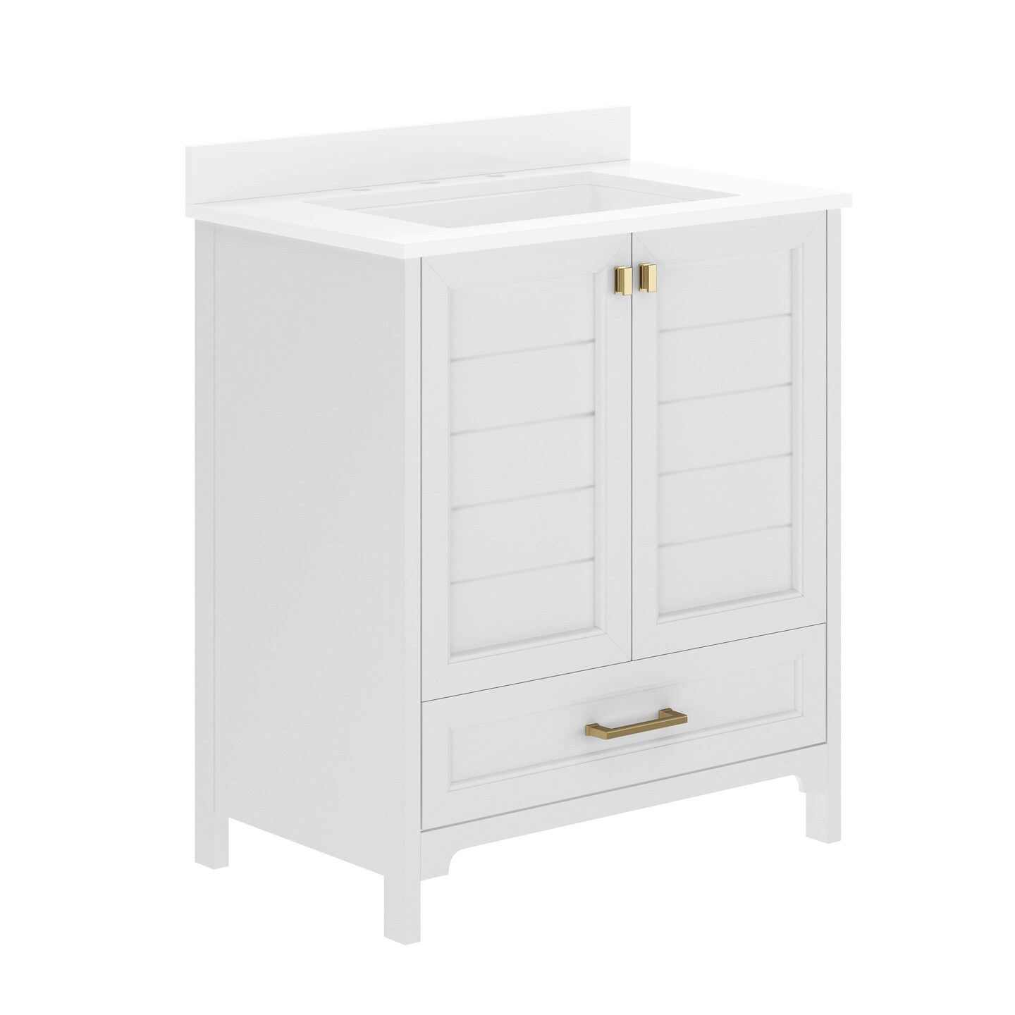Merrick Lane Argos Single Sink Bathroom Vanity with Undermount Basin, Soft-Close Cabinet, Easy-Glide Drawer, and Carrara Marble Finish Countertop