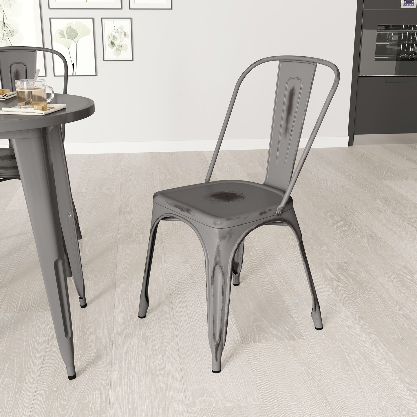 Merrick Lane Banks Indoor/Outdoor Stacking Metal Dining Chair with Single Slat Back and Distressed Powder Coated Finish