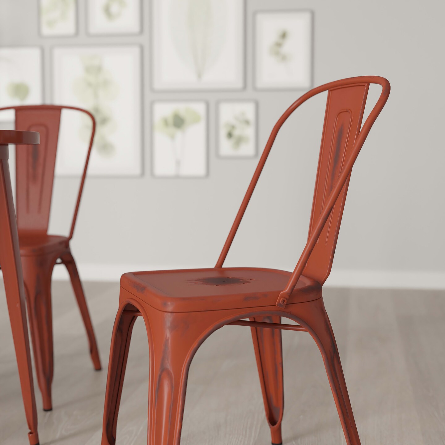 Merrick Lane Banks Indoor/Outdoor Stacking Metal Dining Chair with Single Slat Back and Distressed Powder Coated Finish