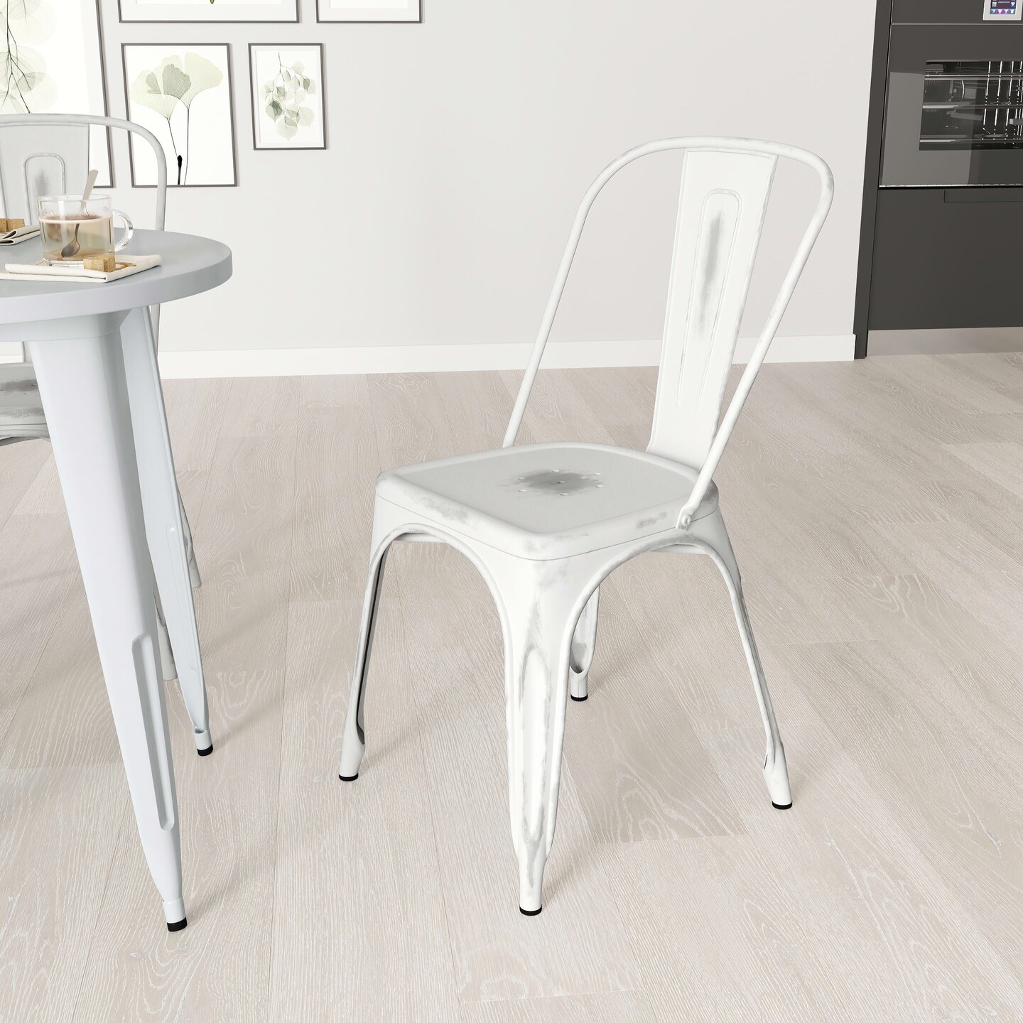 Merrick Lane Banks Indoor/Outdoor Stacking Metal Dining Chair with Single Slat Back and Distressed Powder Coated Finish