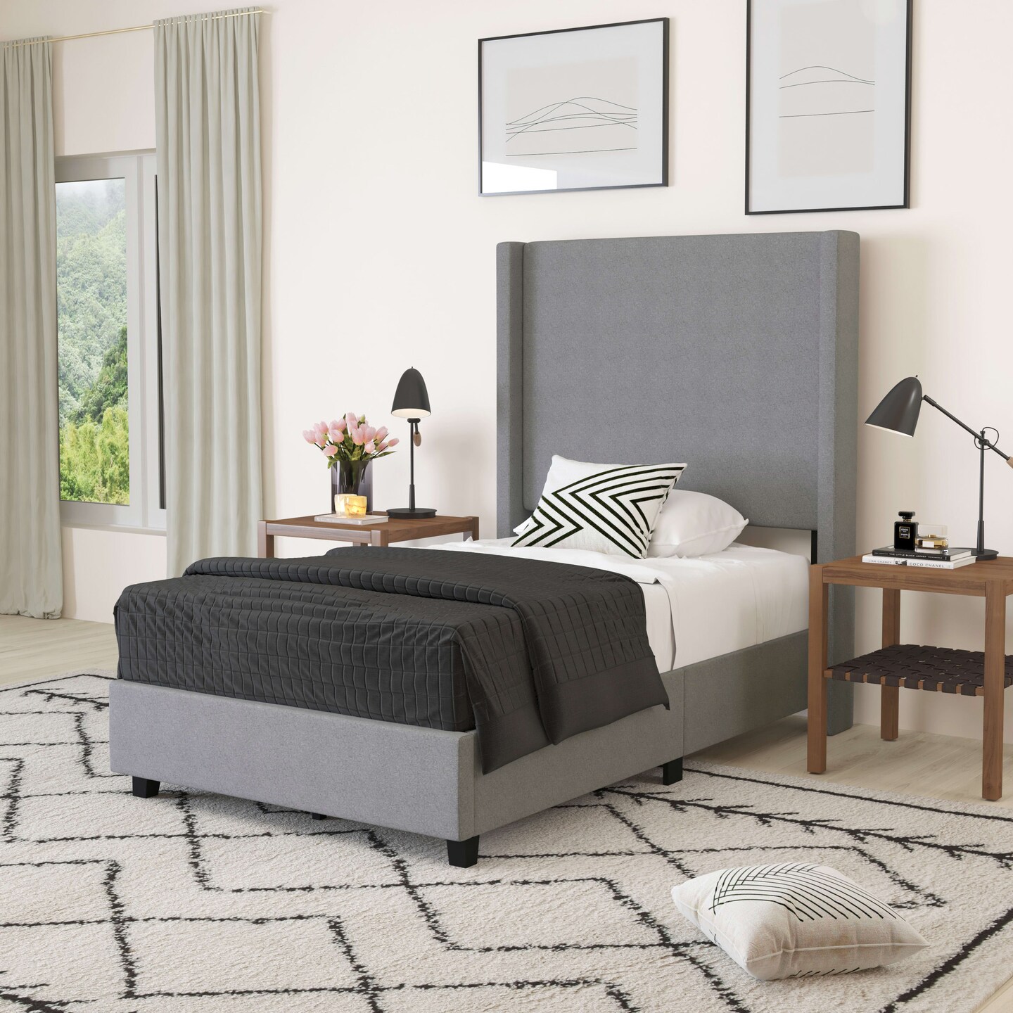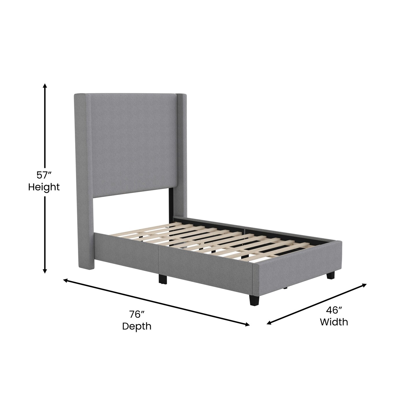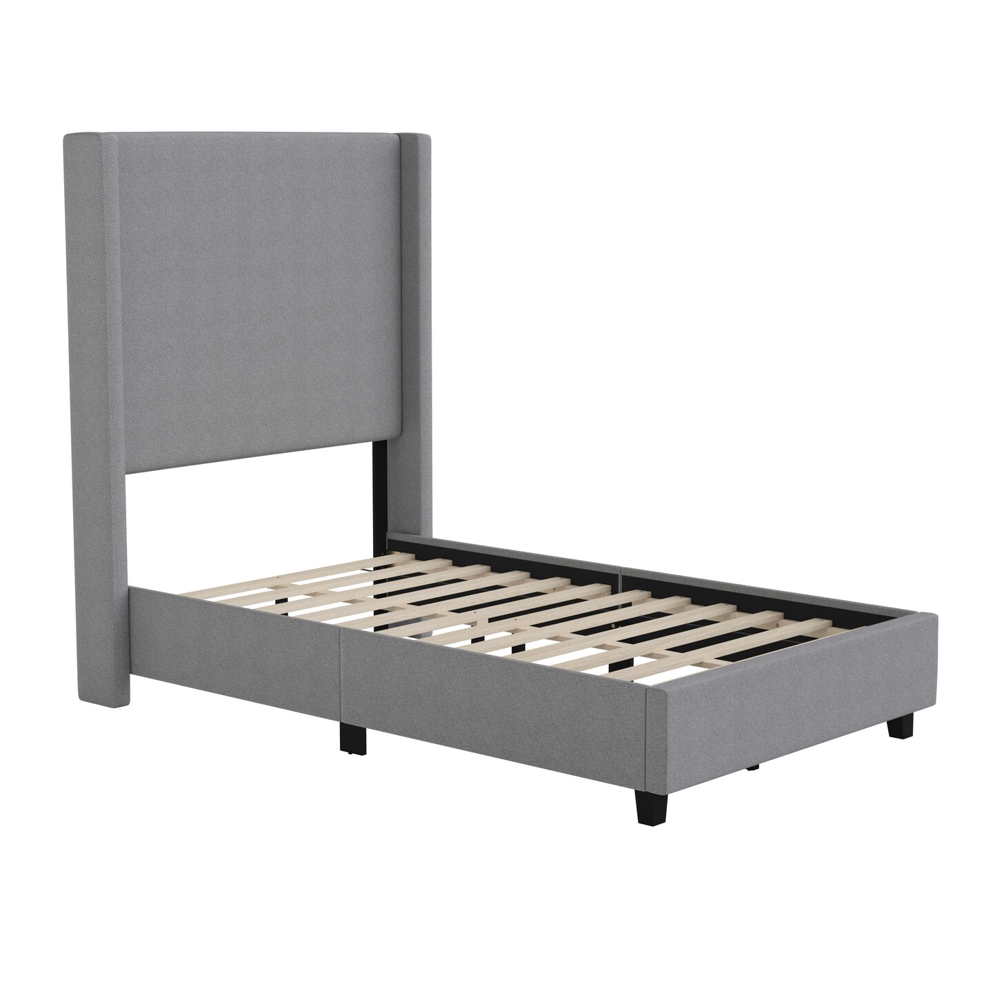 Merrick Lane Bramlett Modern Platform Bed - Gray Faux Linen - Queen - Padded Wingback Headboard - 6" Floor Clearance - Wood Support Slats - No Box Spring Needed