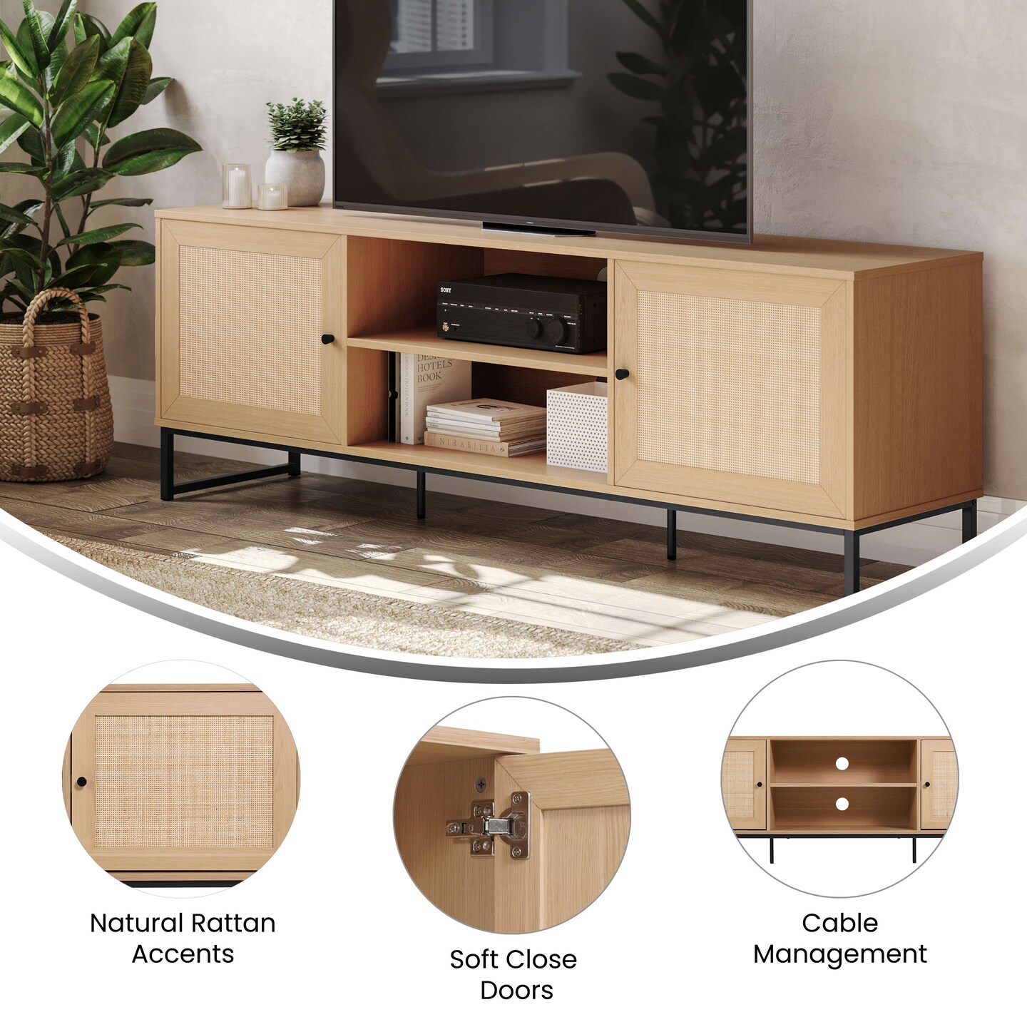 Merrick Lane Burkett 65" Mid-Century Modern TV Stand Made with Durable Engineered Wood Accommodates up to 70" TV's