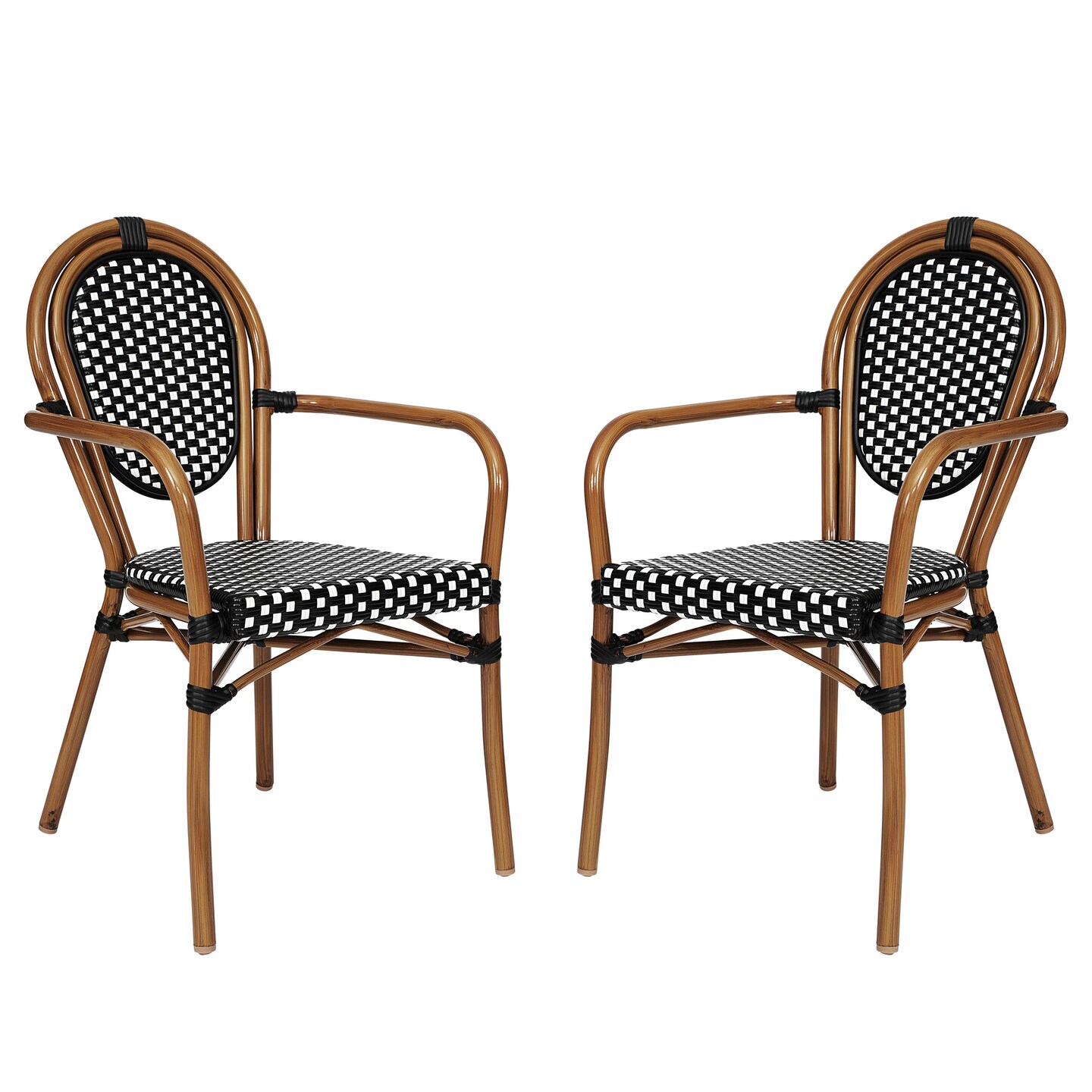 Merrick Lane Celia Set of Two Stacking Thonet Bistro Style Chair with Arms, PE Rattan Seat, and Metal Frame for Indoor/Outdoor Use