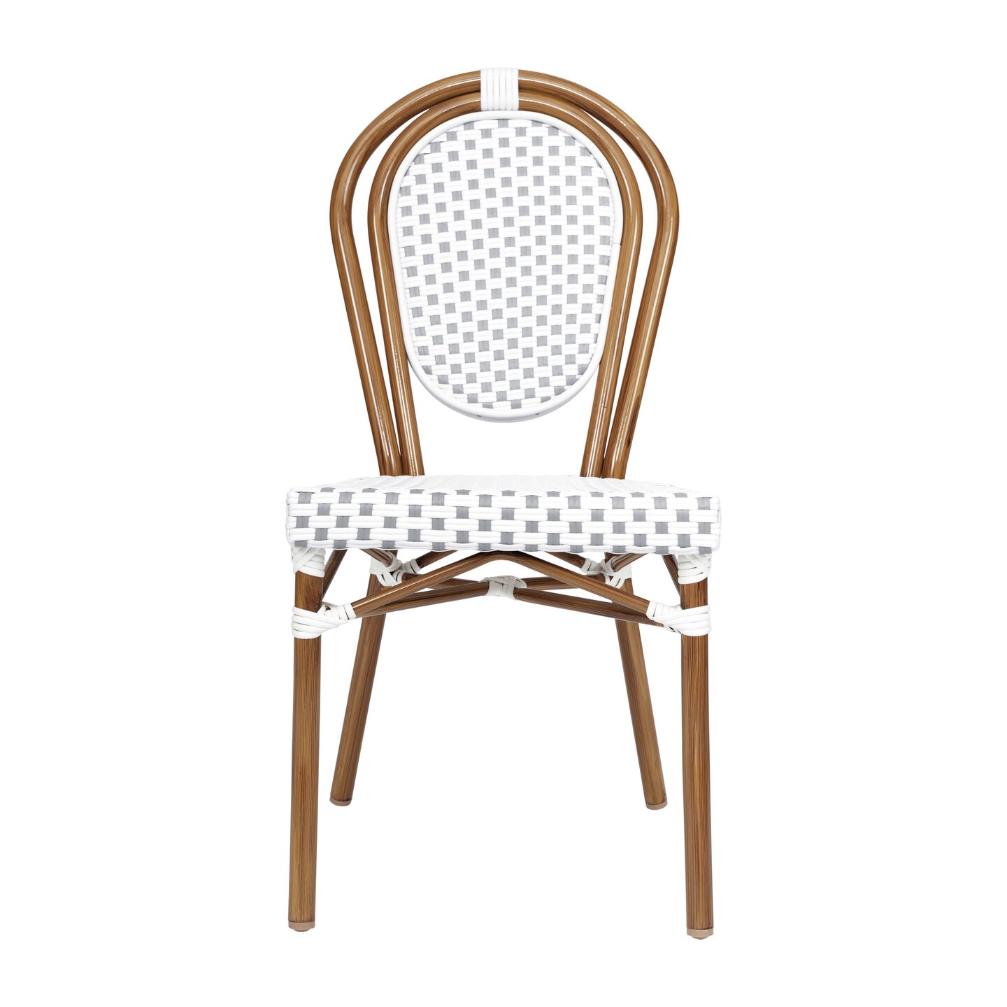 Merrick Lane Celia Stacking Thonet Bistro Style Chair, PE Rattan Seat, and Metal Frame for Indoor/Outdoor Use