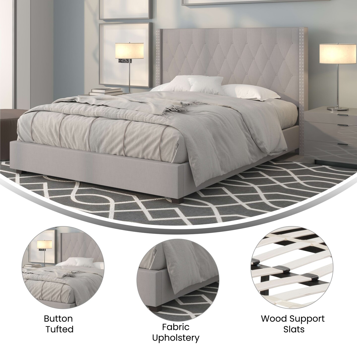 Merrick Lane Chenoa Upholstered Platform Bed with Button Tufted Headboard