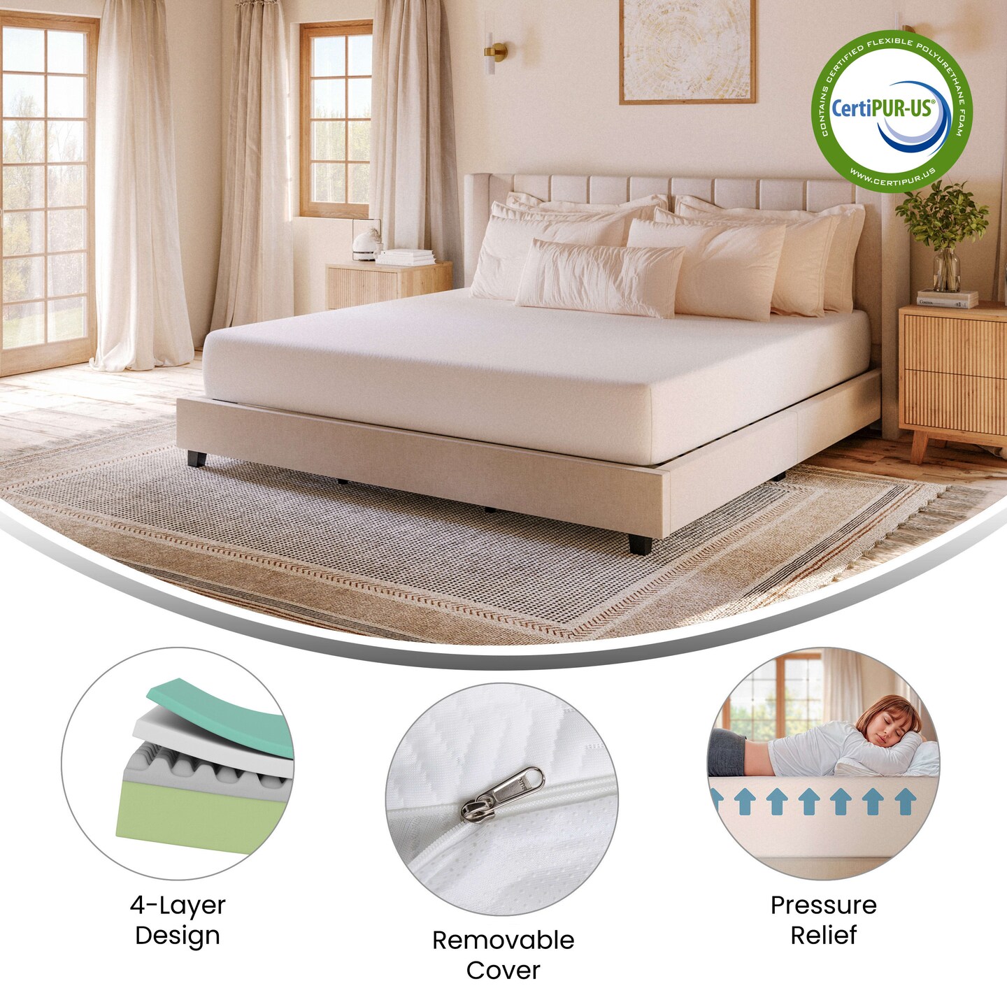 Merrick Lane Cielo Memory Foam Mattress in a Box with 4 Layers, Green Tea-Infused Foam, Air Circulation Foam, Cooling Gel, CertiPUR-US Certified Foam