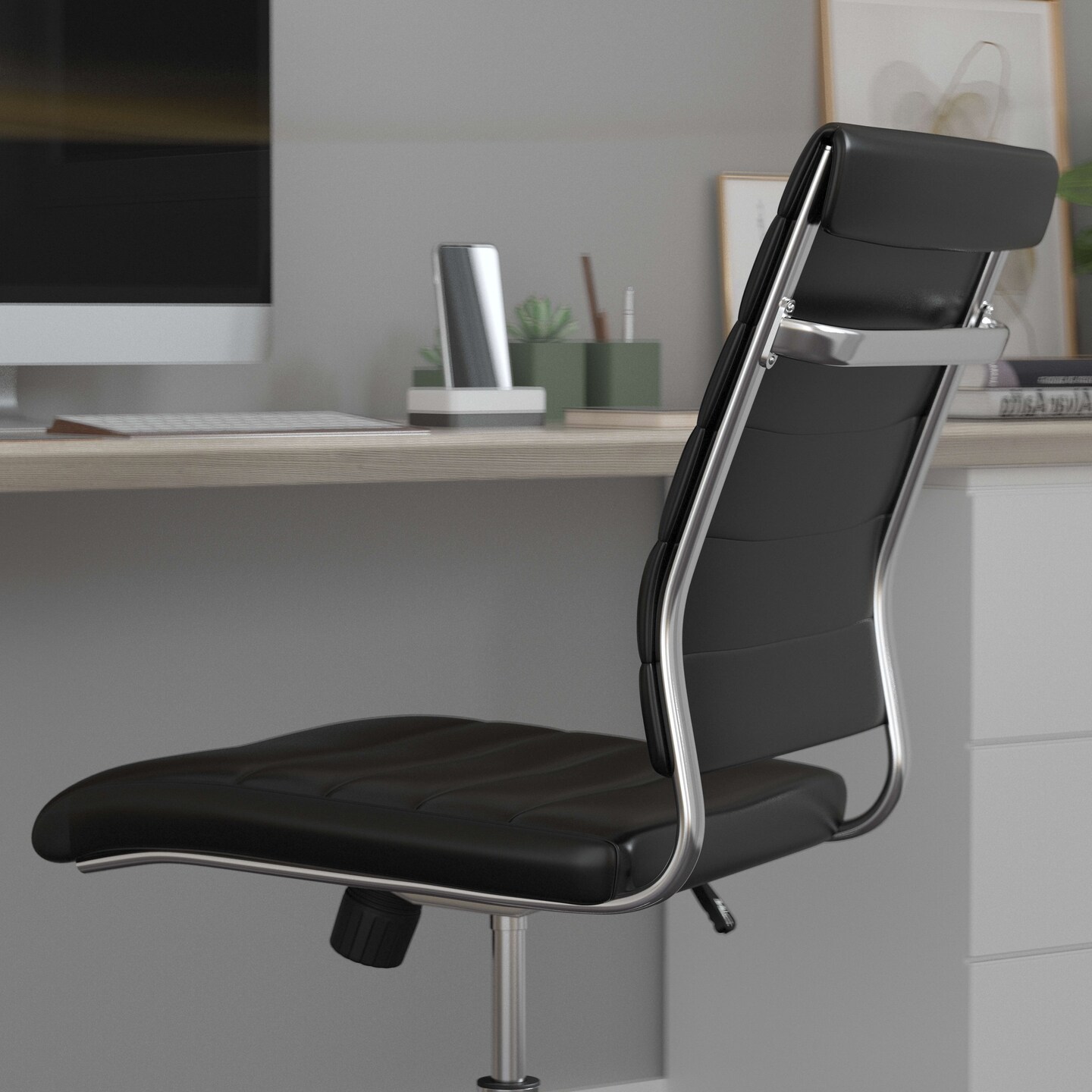 Merrick Lane Corrina Ergonomic Swivel Office Chair Ribbed Back and Seat Mid-Back Armless Computer Desk Chair with Metal Base