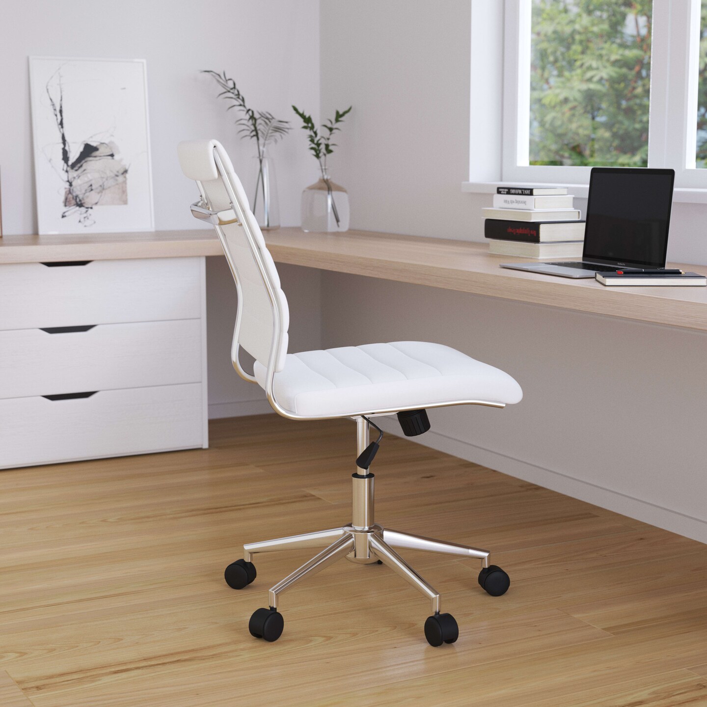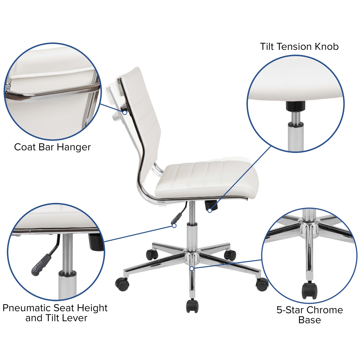 Merrick Lane Corrina Ergonomic Swivel Office Chair Ribbed Back and Seat Mid-Back Armless Computer Desk Chair with Metal Base