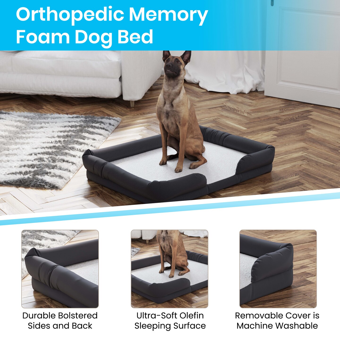 Merrick Lane Cozy Orthopedic Joint Relief Memory Foam Bolster Dog Bed, Removable, Washable Cover, Non-Slip Bottom