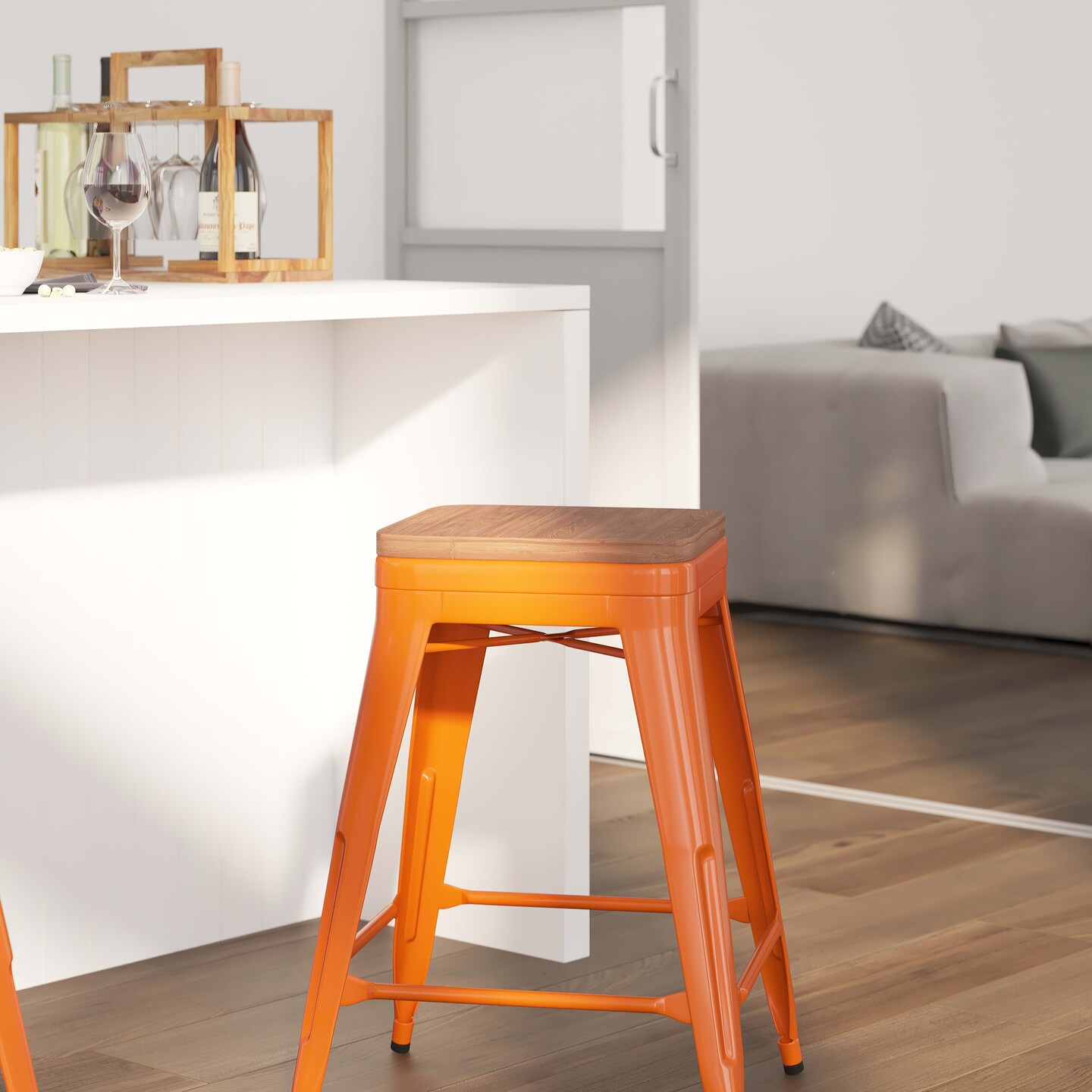 Merrick Lane Dalton Series Backless Metal Dining Stool with Wooden Seat for Indoor Use