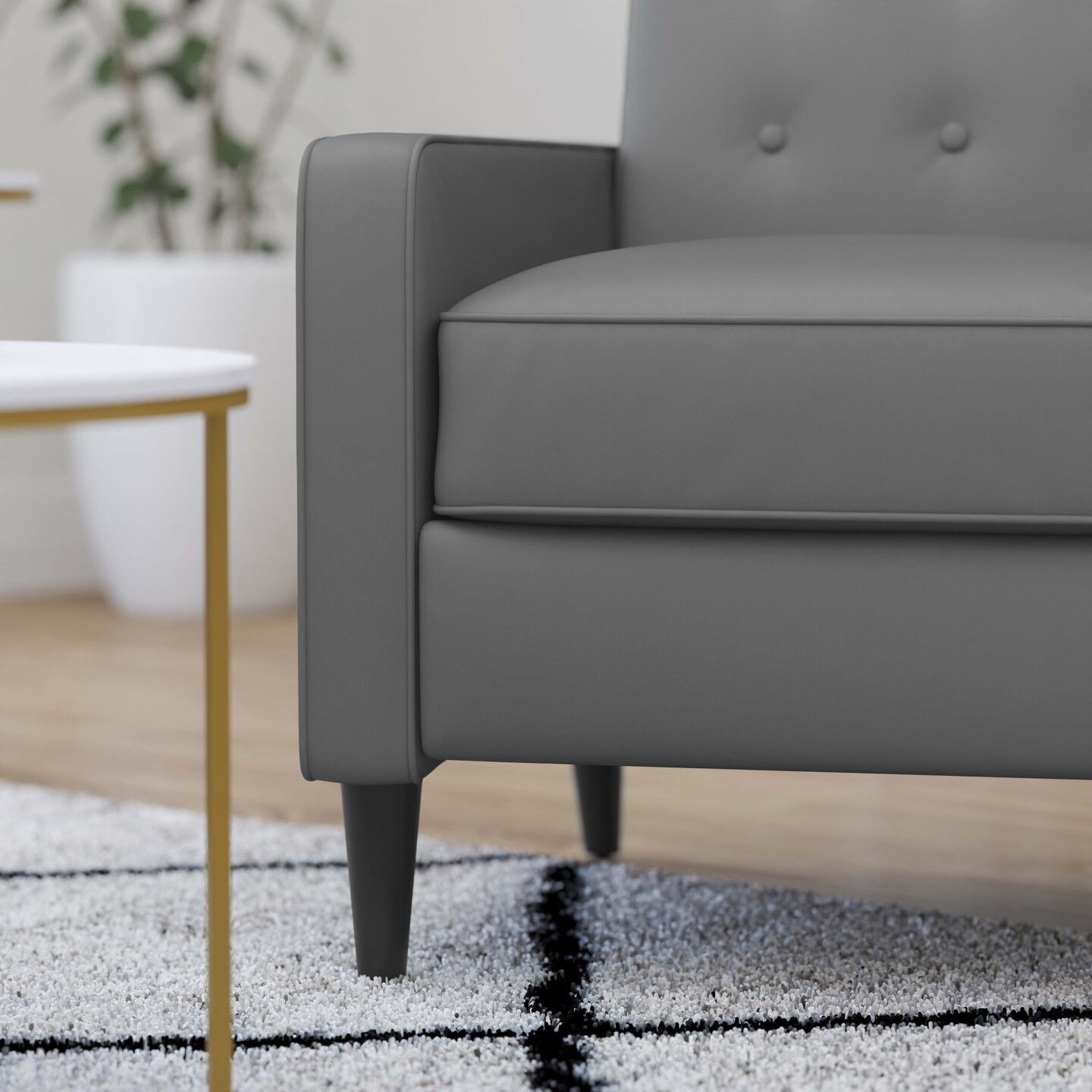 Merrick Lane Darcy Recliner Chair Mid-Century Modern Faux Leather Tufted Upholstery Ergonomic Push Back Living Room Recliner