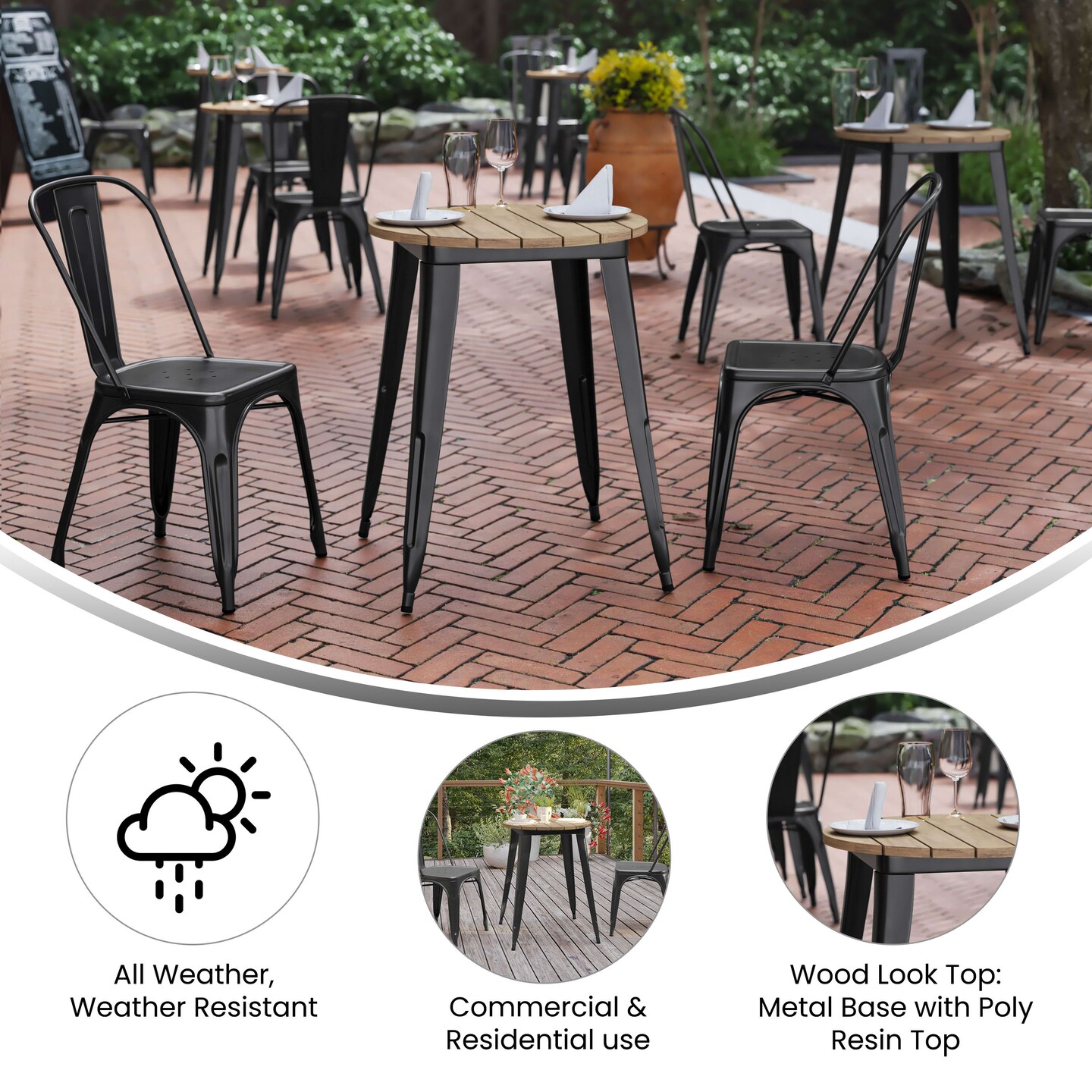 Merrick Lane Dryden Indoor/Outdoor Dining Table, 23.75" Round All Weather Poly Resin Top with Steel Base