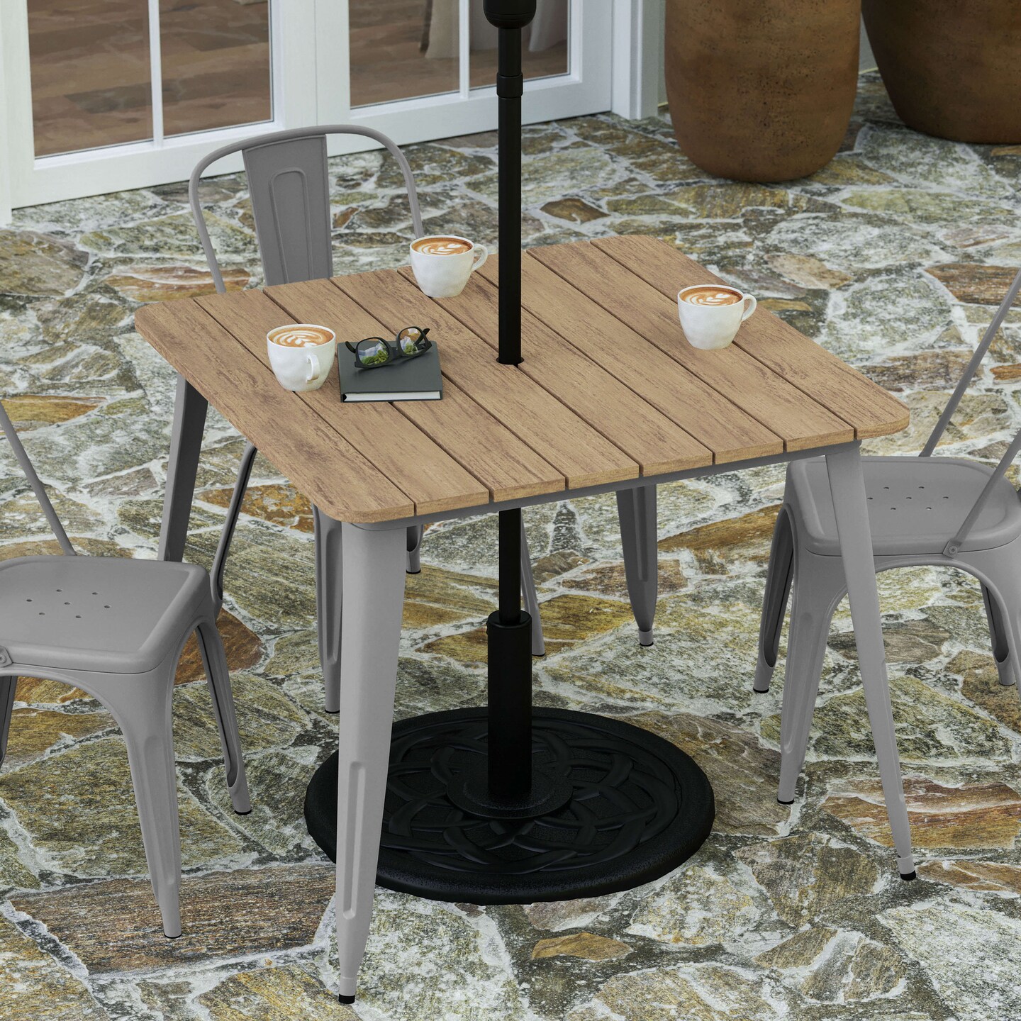 Merrick Lane Dryden Indoor/Outdoor Dining Table with Umbrella Hole, 36" Square All Weather Poly Resin Top and Steel Base