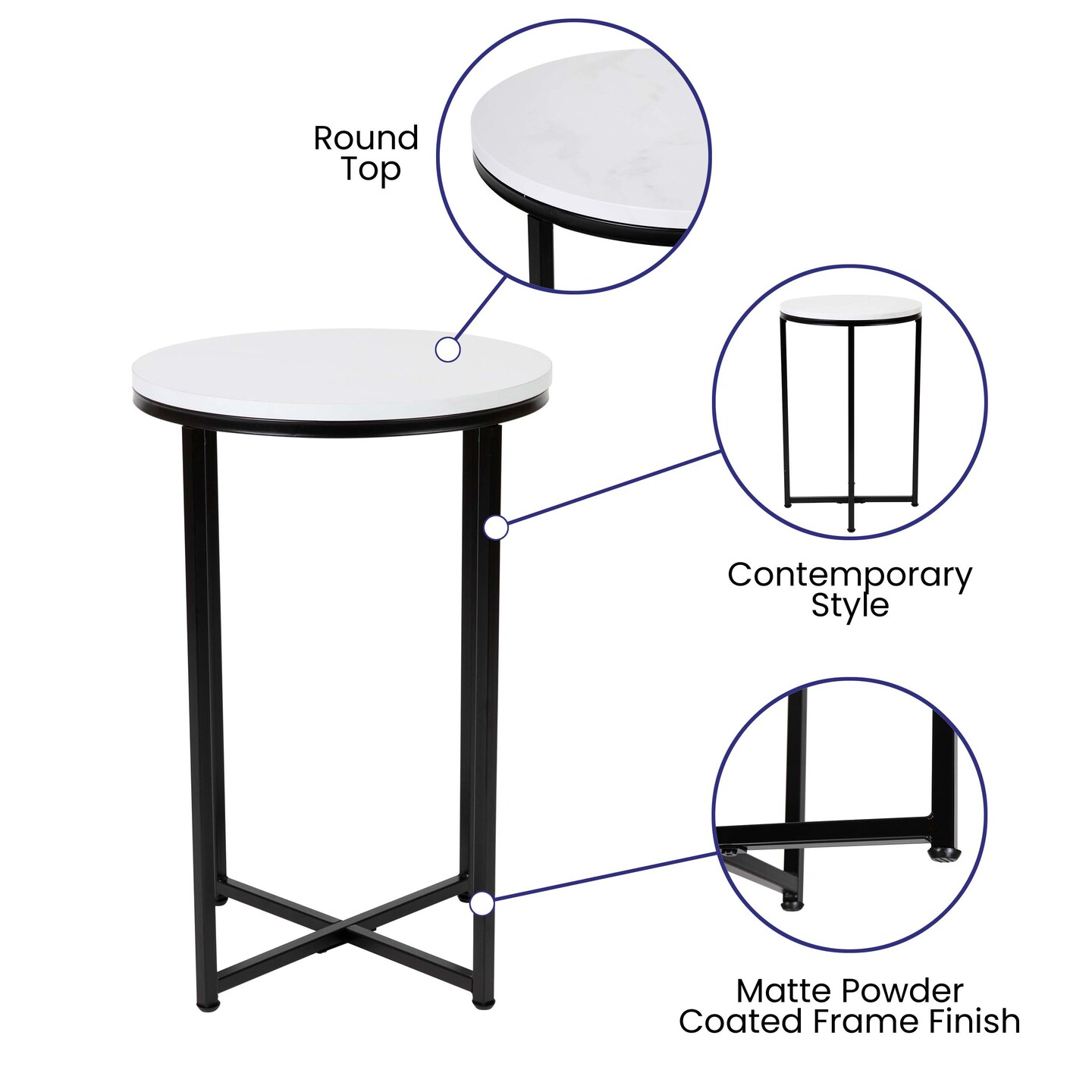 Merrick Lane Fairdale End Table with Round Cross Brace Frame
