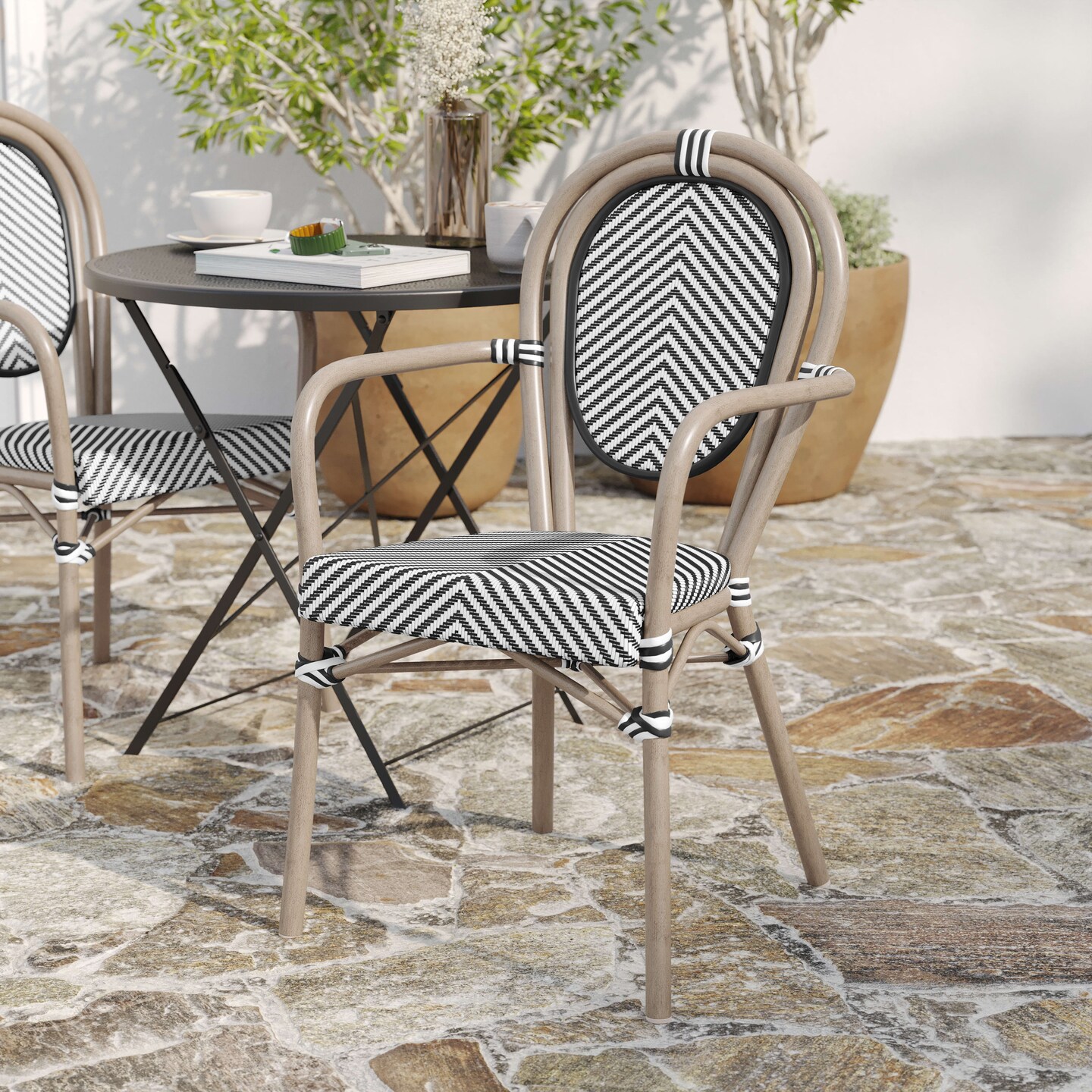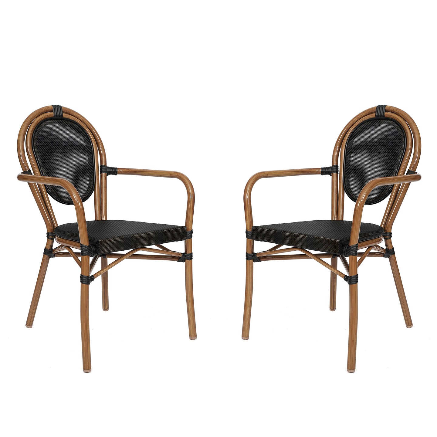 Merrick Lane Mael Set of Two Stacking Thonet Bistro Style Chair with Arms, Textilene Seat, and Bamboo Finished Metal Frame for Indoor/Outdoor Use