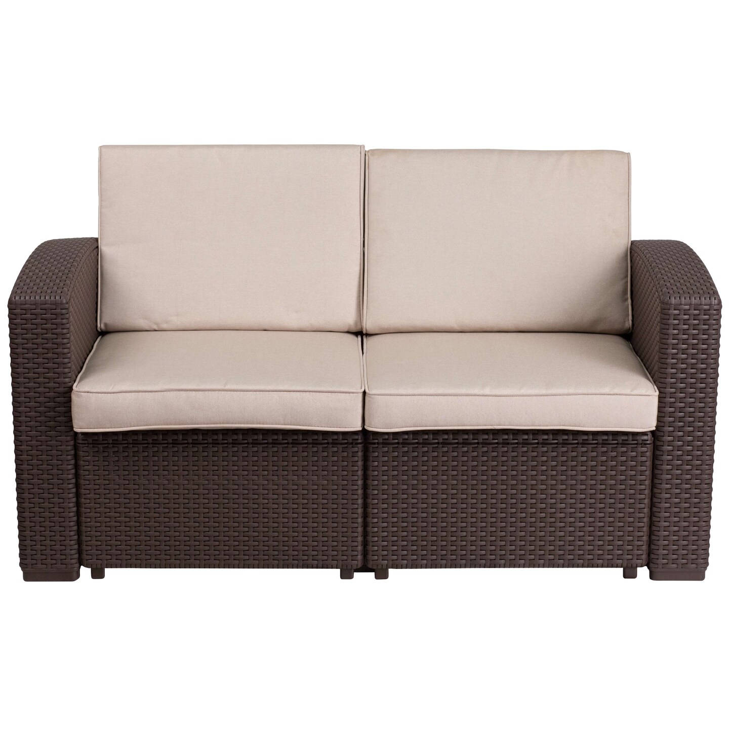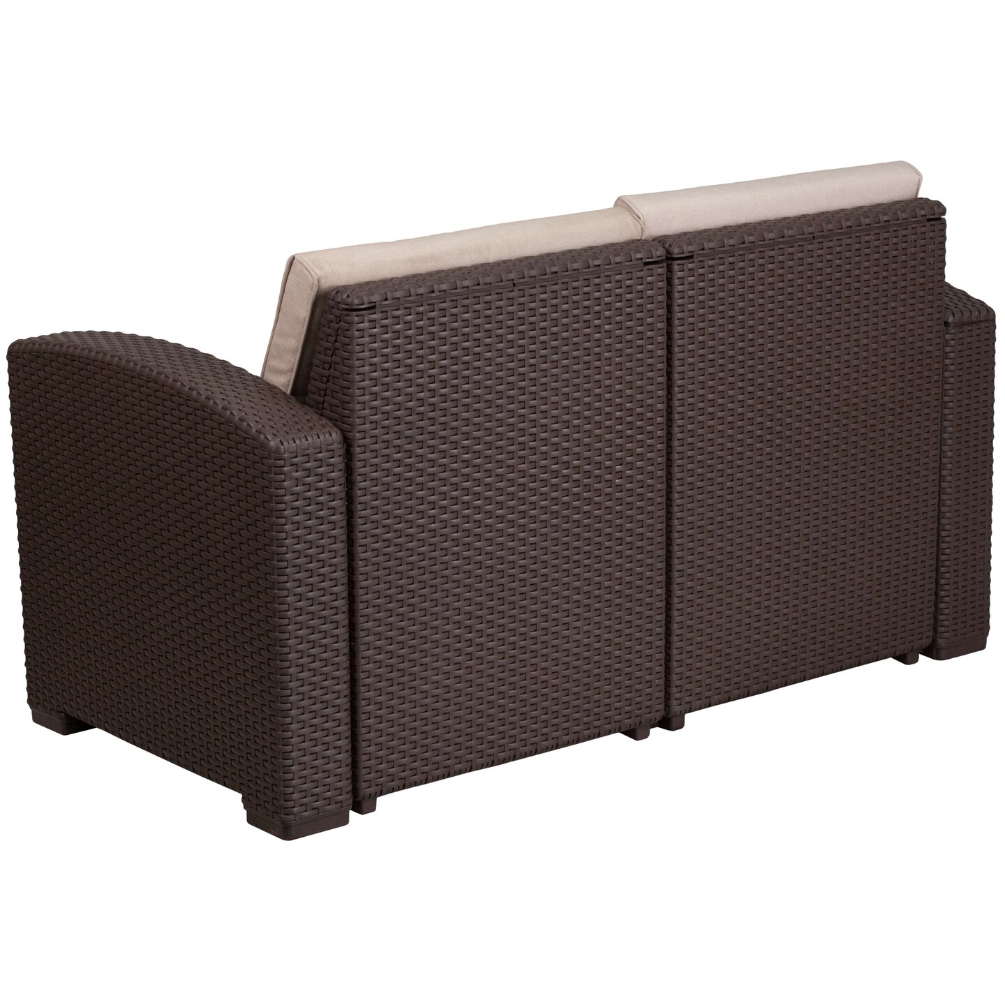 Merrick Lane Malmok Outdoor Furniture Resin Loveseat Faux Rattan Wicker Pattern 2-Seat Loveseat With All-Weather Cushions