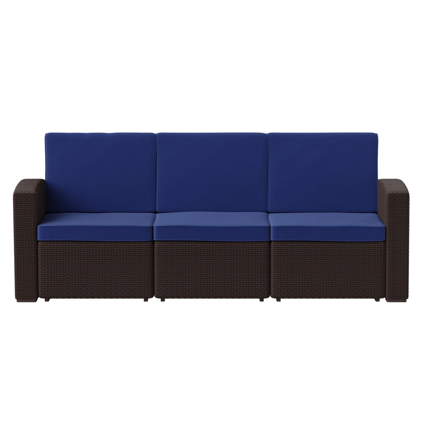 Merrick Lane Malmok Outdoor Furniture Resin Sofa Faux Rattan Wicker Pattern Patio 3-Seat Sofa With All-Weather Cushions