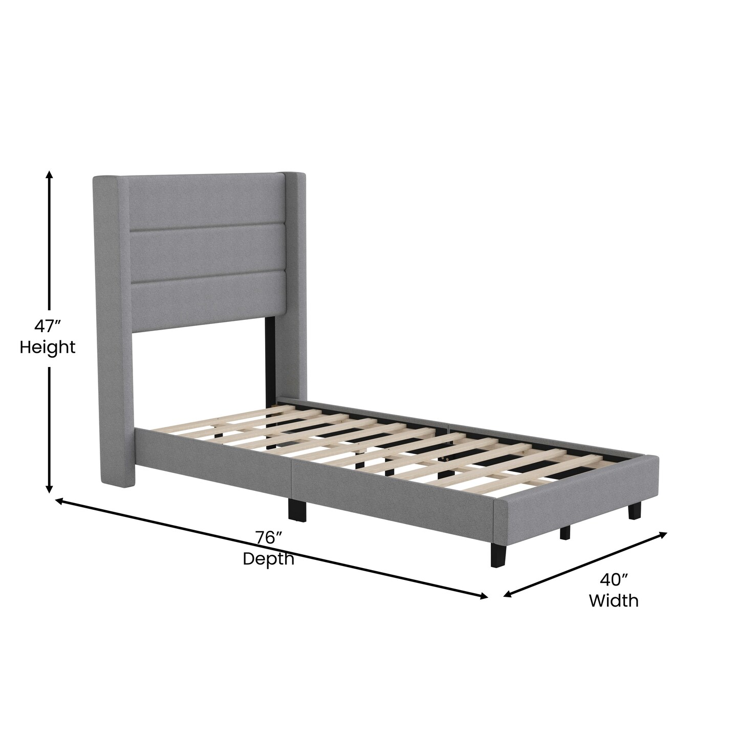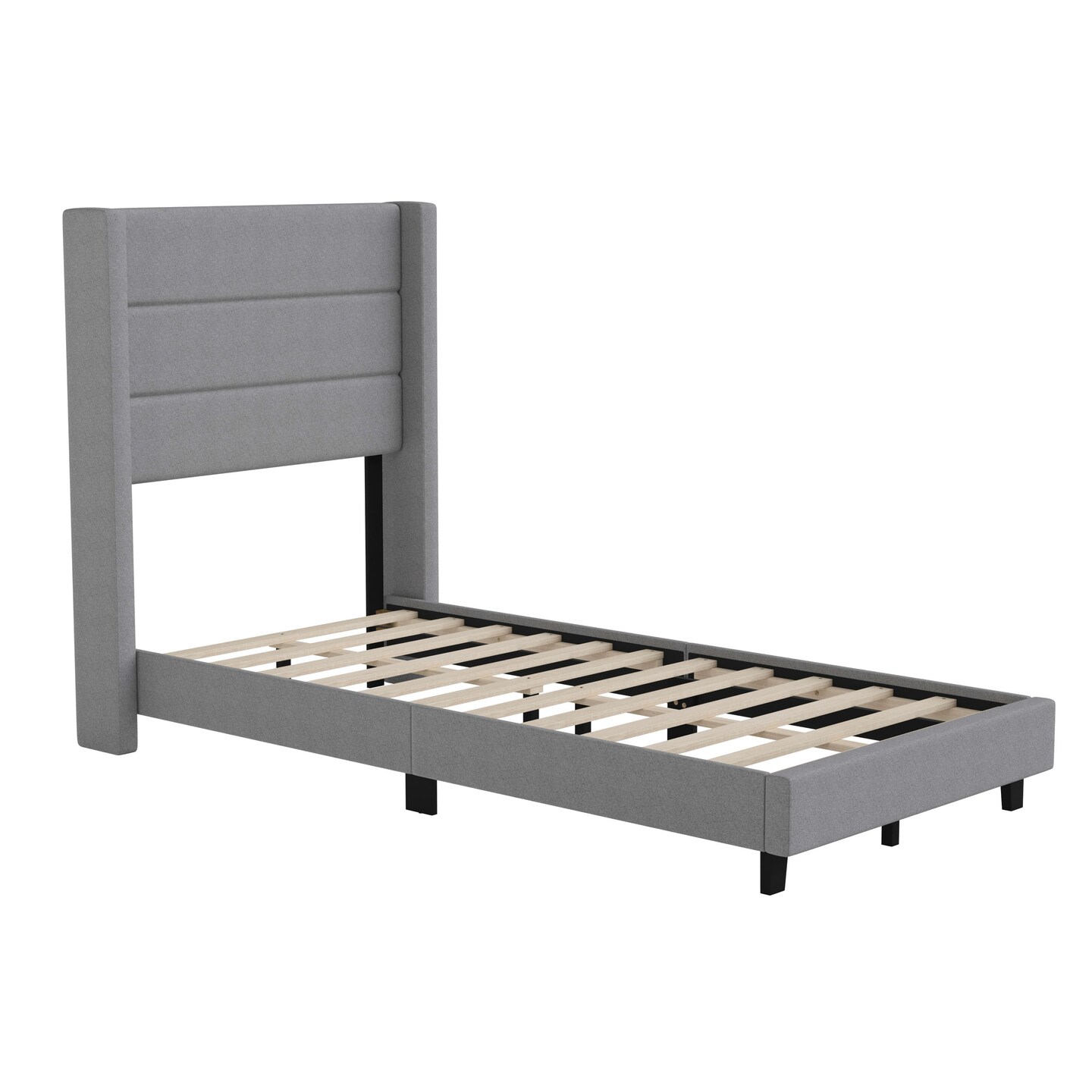 Merrick Lane Percy Modern Platform Bed with Padded Channel Stitched Upholstered Wingback Headboard and Underbed Clearance
