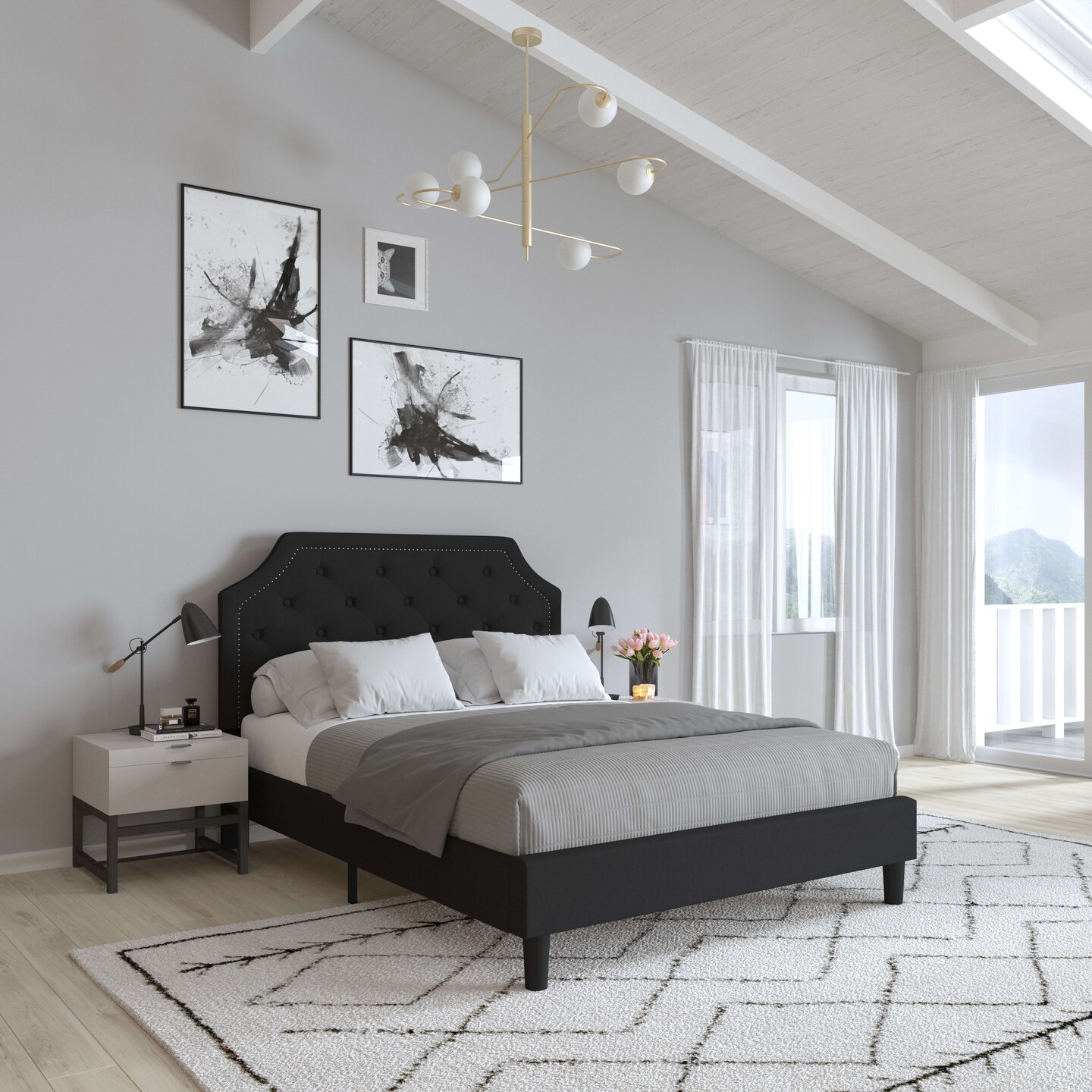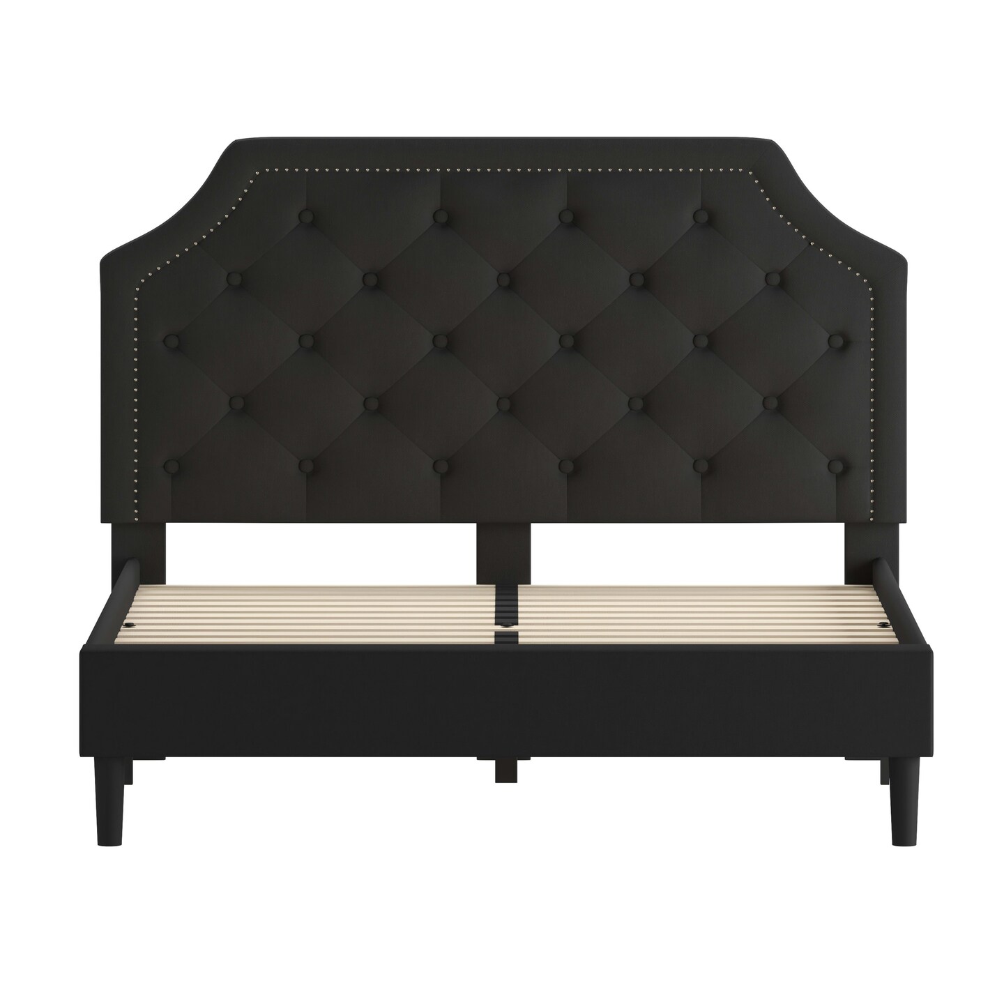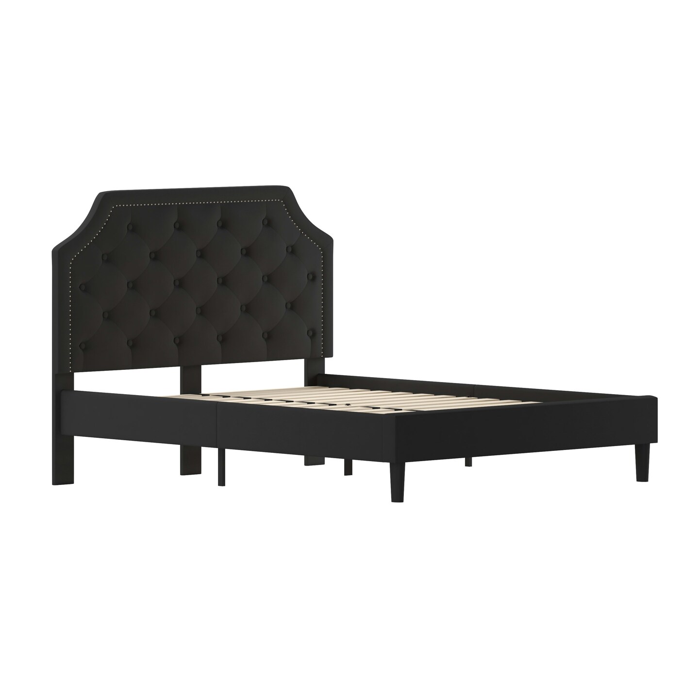 Merrick Lane Provence Platform Bed with Slatted Support Contemporary Tufted Upholstery with Accent Nail Trim