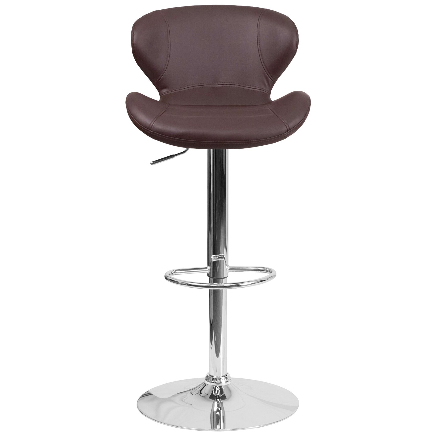 Merrick Lane Quincy Adjustable Height Barstool Contemporary Bar Height Stool with Curved Back and Metal Base with Footrest